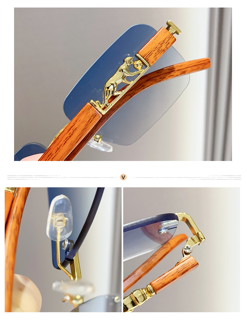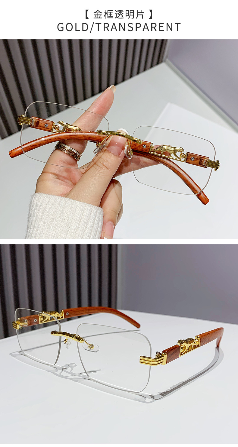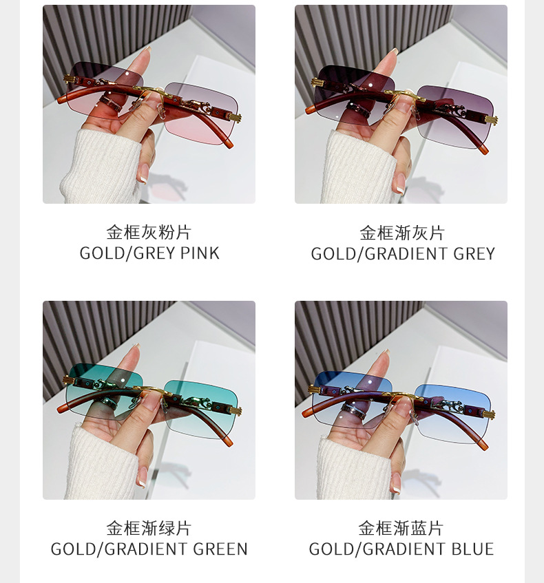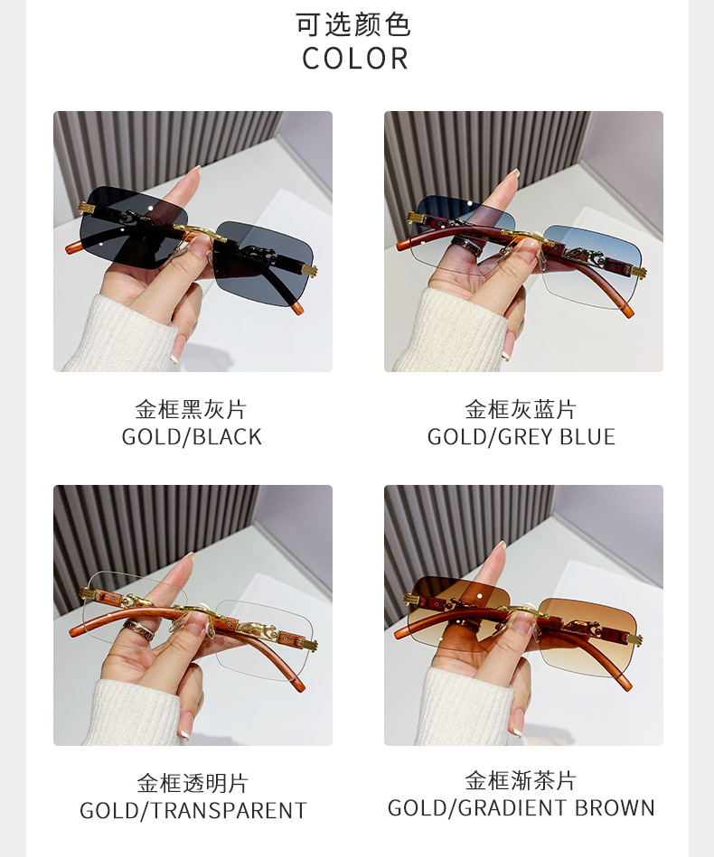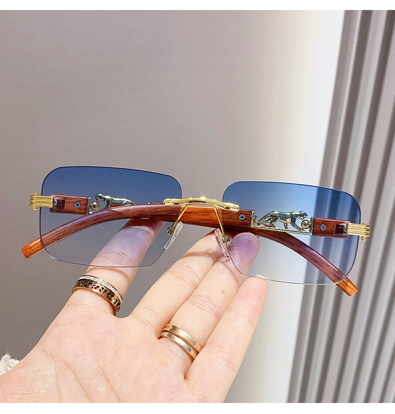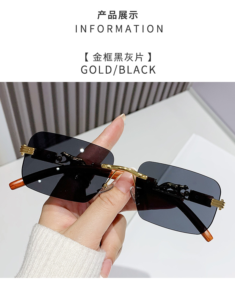 木纹豹子头太阳镜女新款潮流无框切边男士方框太阳眼镜潮墨镜
