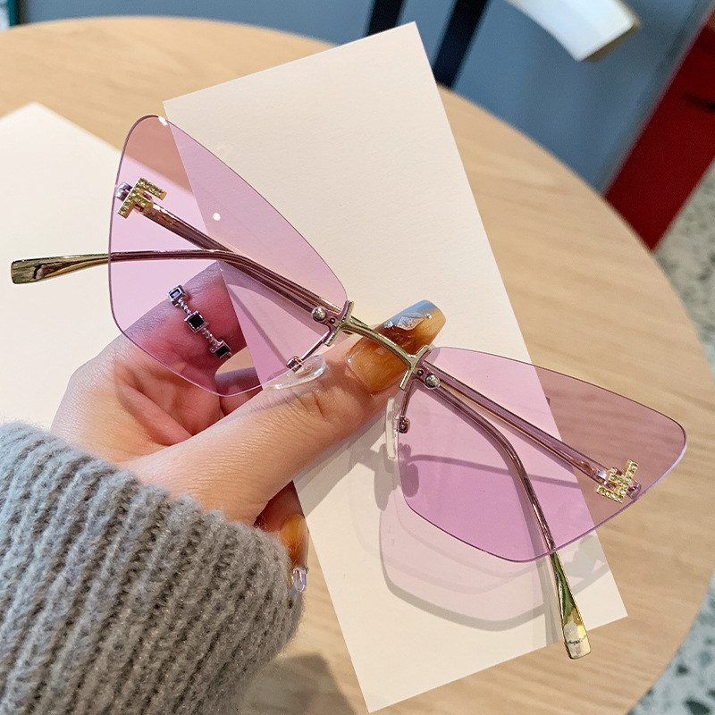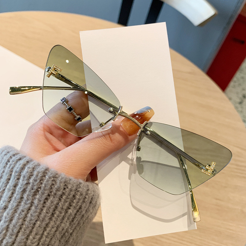 新款字母F镶钻墨镜女高级感无框切边太阳眼镜跨境猫眼金属太阳镜