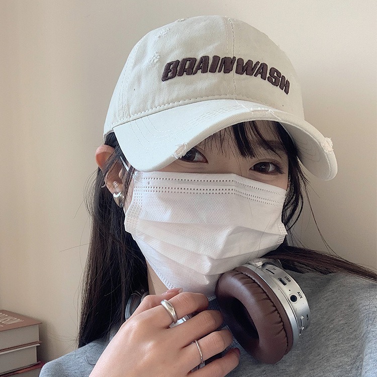棒球帽子女韩版新款宽帽檐深顶字母软顶显脸小美式破洞遮阳棒球帽
