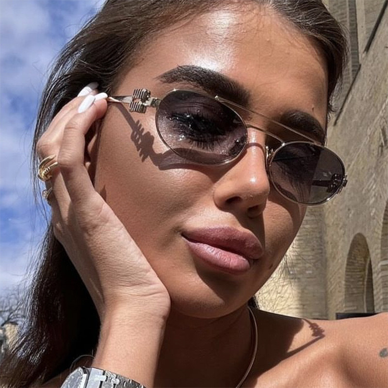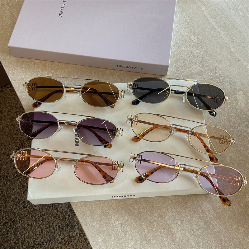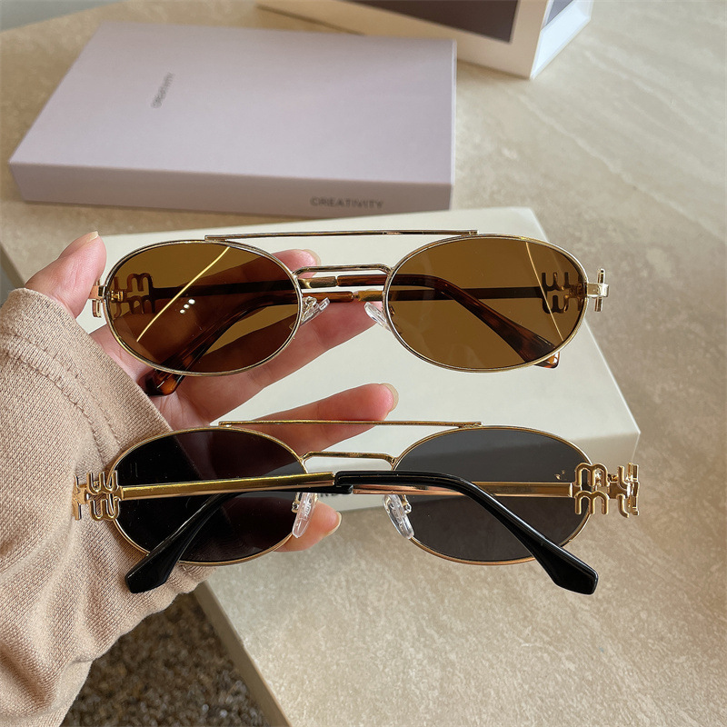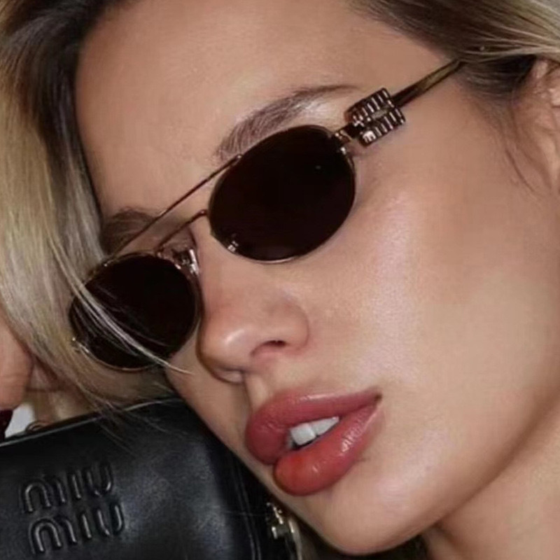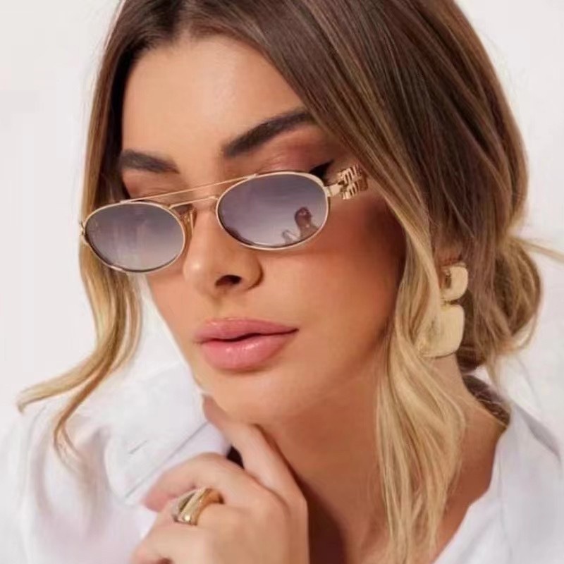 双梁椭圆太阳镜2025新款欧美小框太阳眼镜女士高级感墨镜女凹造型