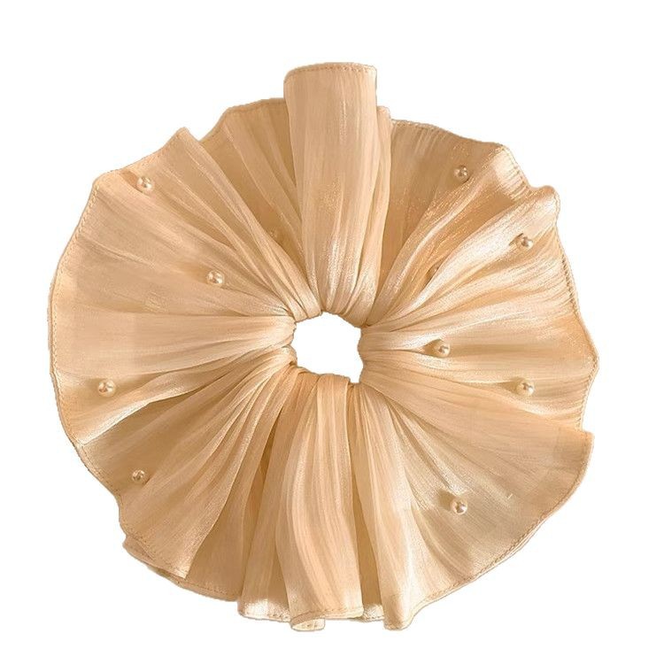 月下流光~米色珍珠缎面大肠发圈女韩系高级感超大头饰扎头发发绳