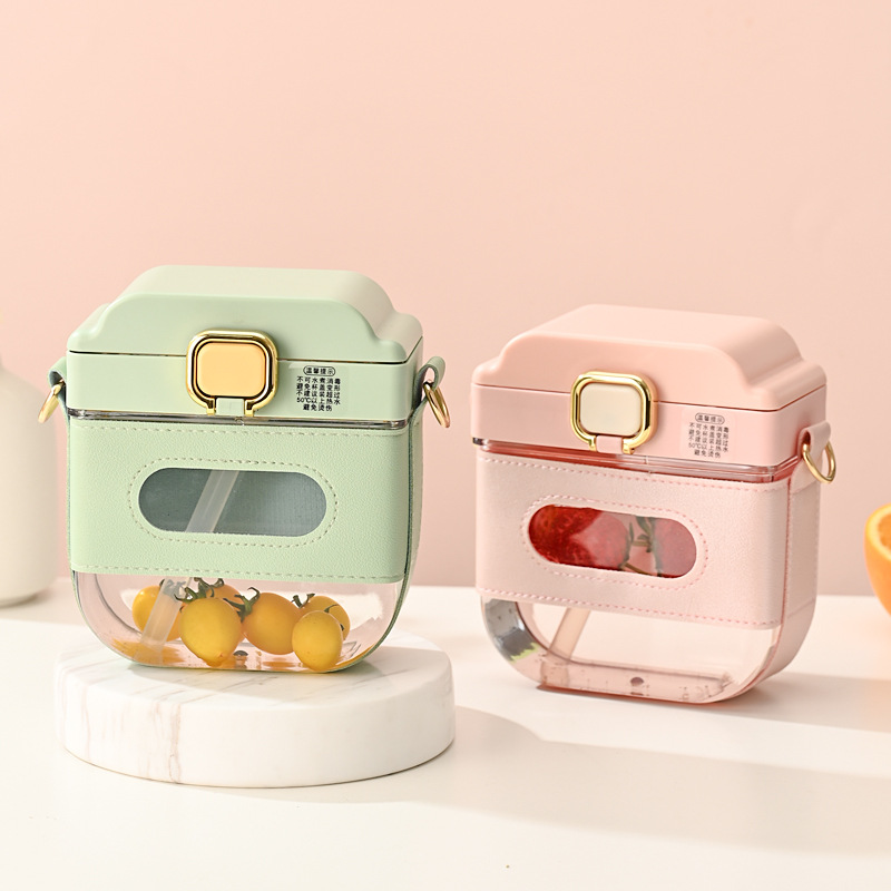 方形吸管杯夏季大容量ins风高档精致女士水杯高颜值斜挎包包杯子