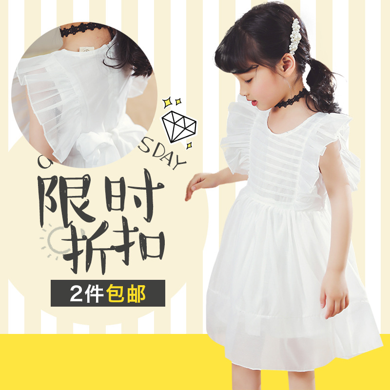 新款女童连衣裙夏韩版飞袖儿童裙子蝴蝶结可爱蓬蓬裙