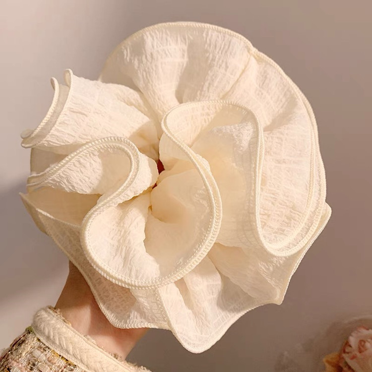 韩系温柔奶白色褶皱大肠发圈女高级感慵懒风超大号扎头发头绳发饰