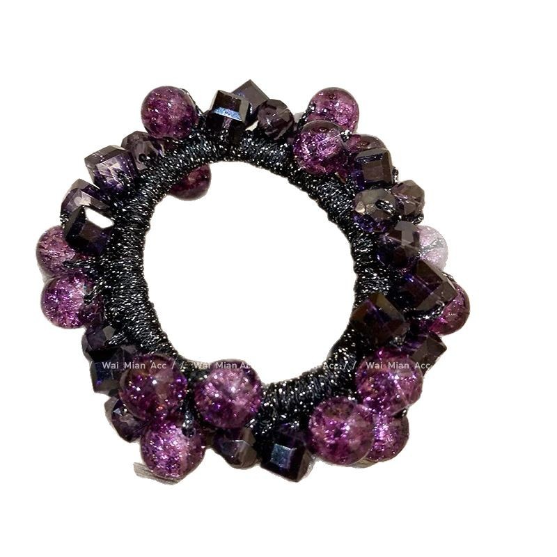 高端紫色头花水晶发圈女马尾头绳新款丸子头扎头发皮筋发饰