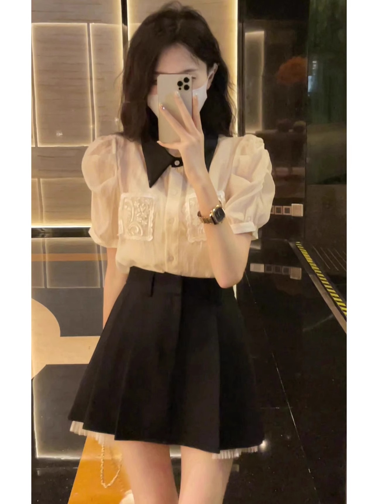 法式高级感polo领网纱雪纺衫女夏季新款宽松气质时尚百搭衬衫上衣