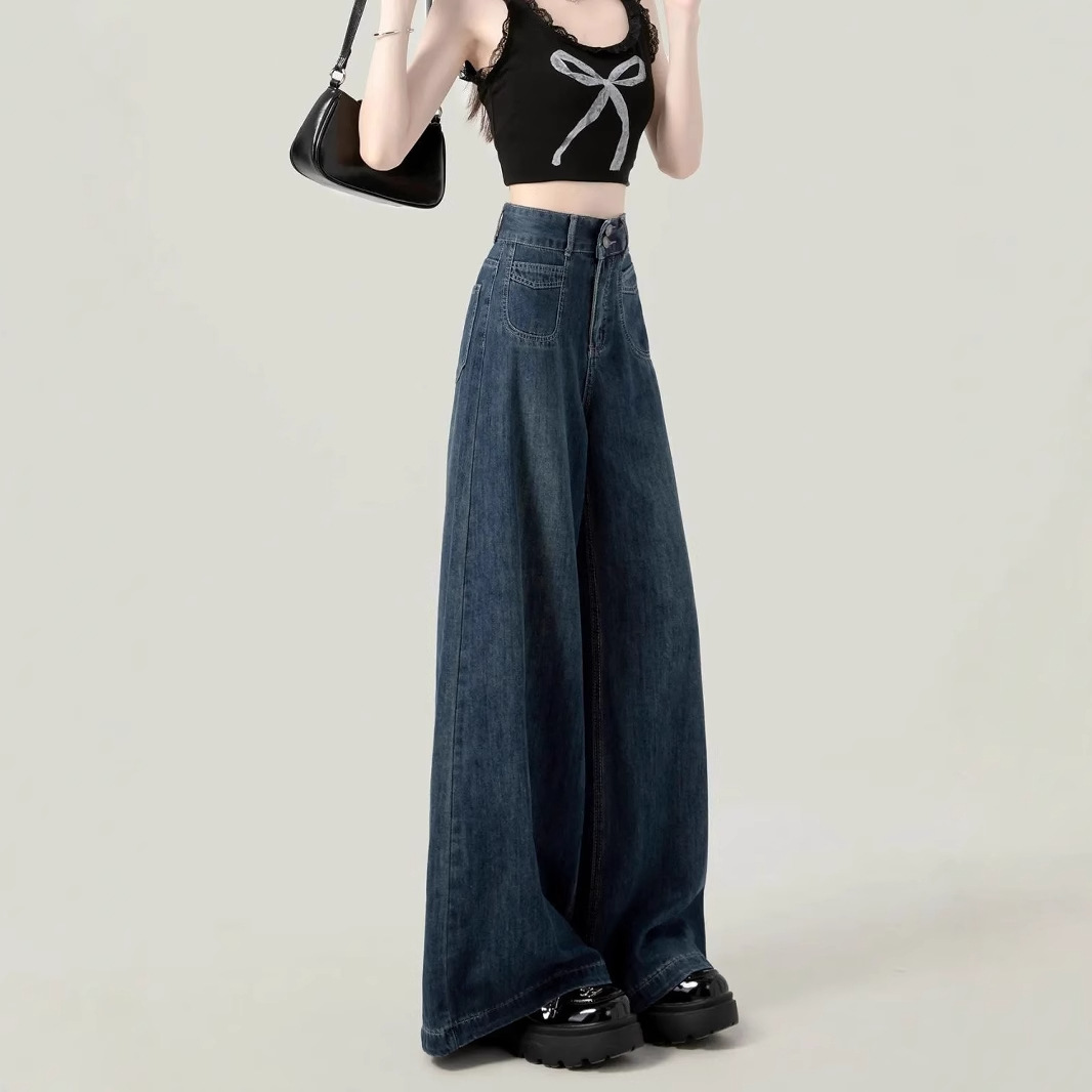 美式高腰阔腿牛仔裤女2025年春秋新款复古宽松显瘦垂感拖地长裤