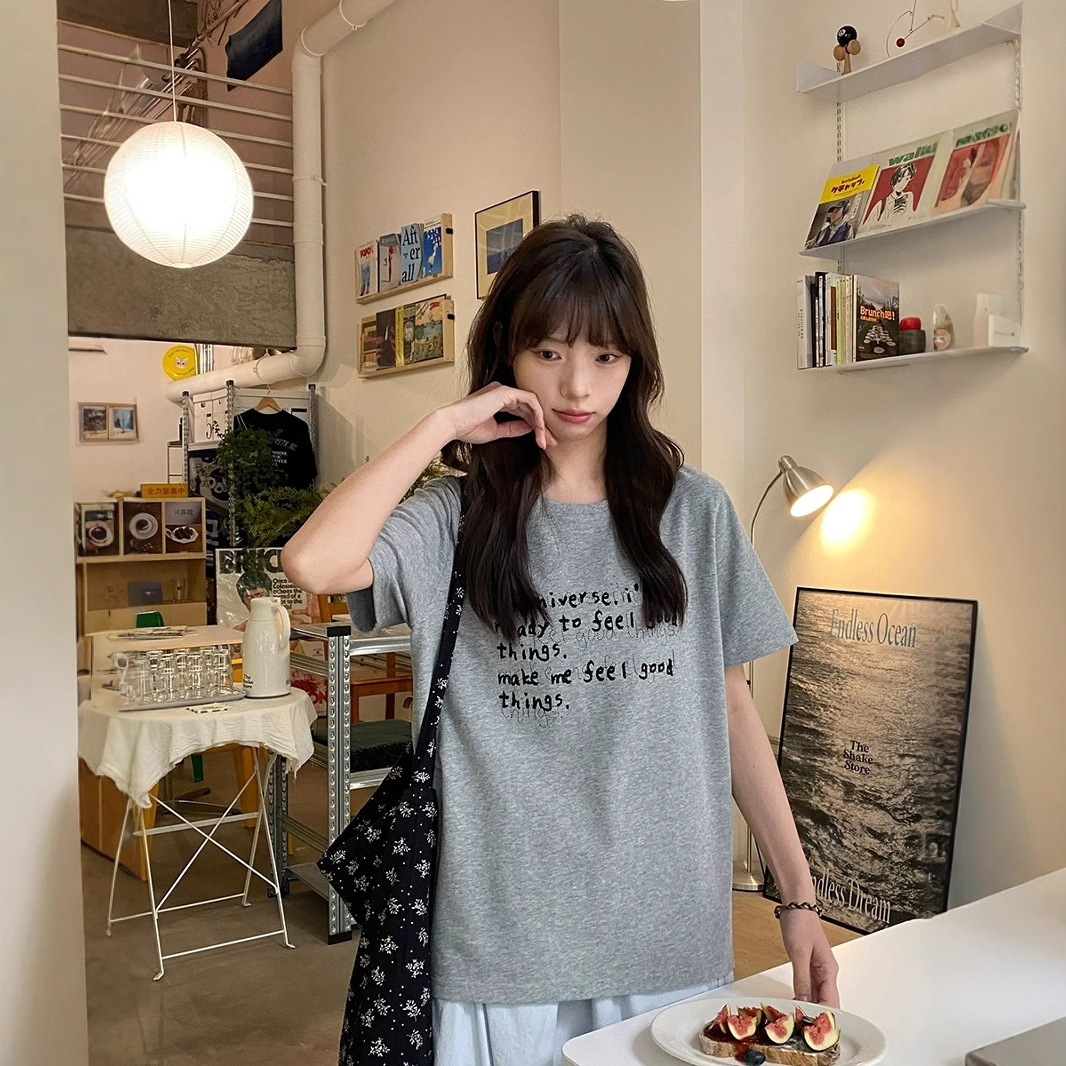 夏季新款短袖女2025年美式绣感小虚线全棉印花字母短袖t恤女