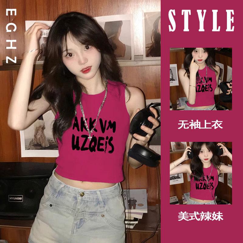 别致设计感性感小背心女夏季多巴胺穿搭玫红色小个子短款无袖T恤