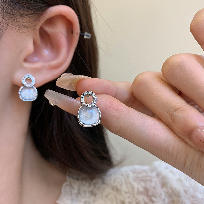小红书同款猫眼石耳钉时尚奢品贝母镶钻耳坠新款耳饰一件代发