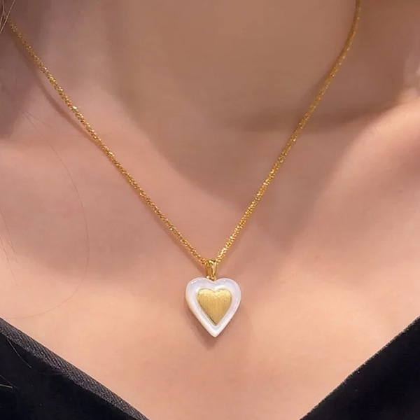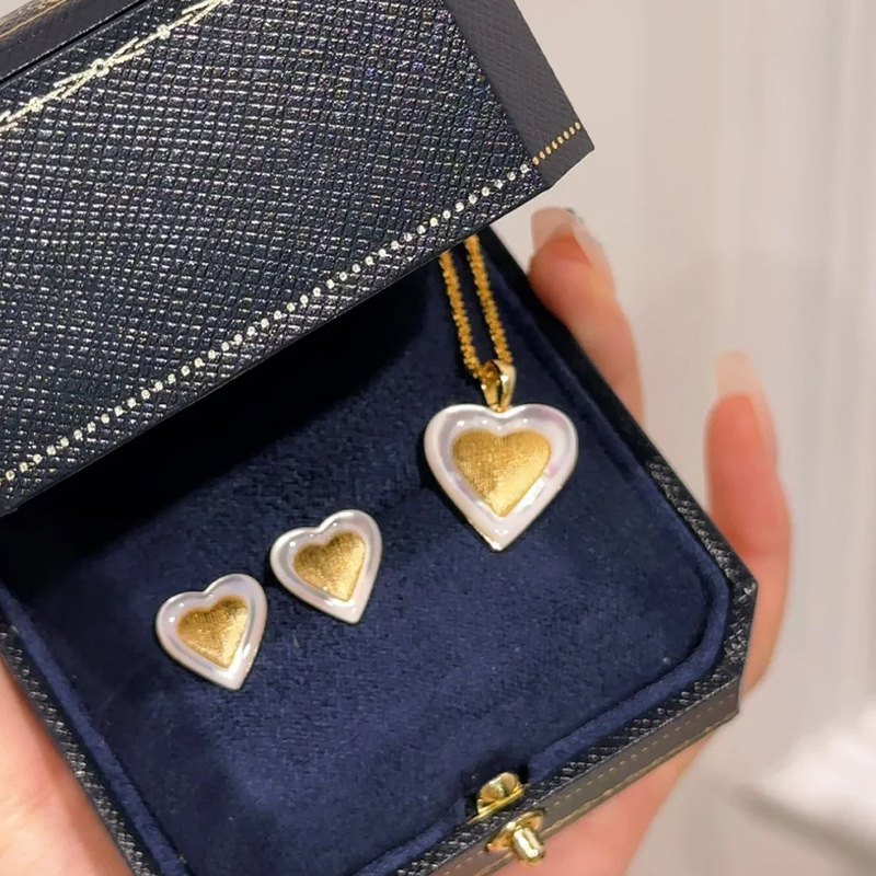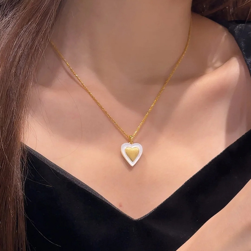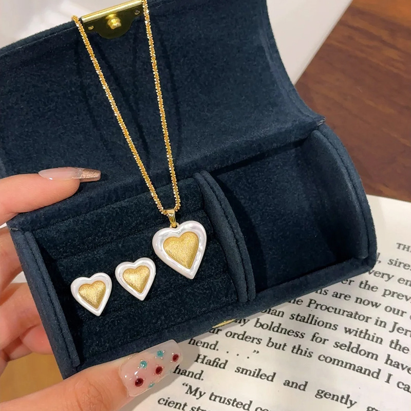小红书爆款爱心白贝项链耳钉复古手工拉丝锁骨链个性百搭轻奢饰品