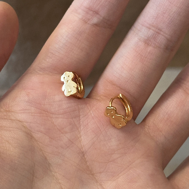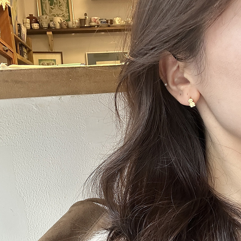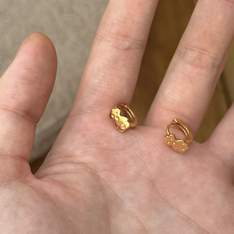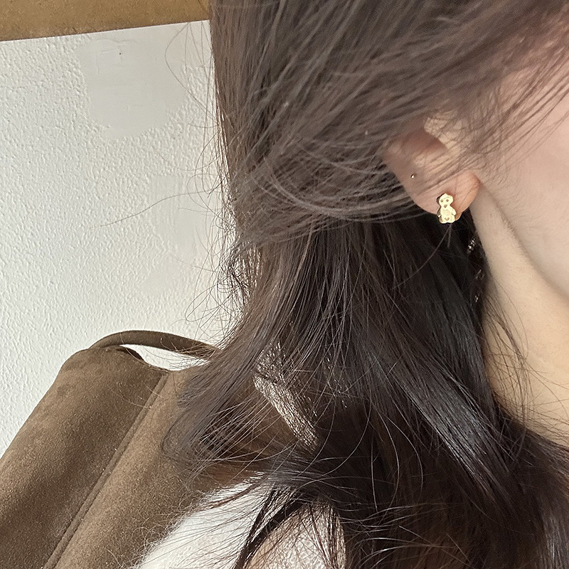 小红书爆款呆萌小熊耳扣女冷淡风时间简约小巧精致耳钉一件代发