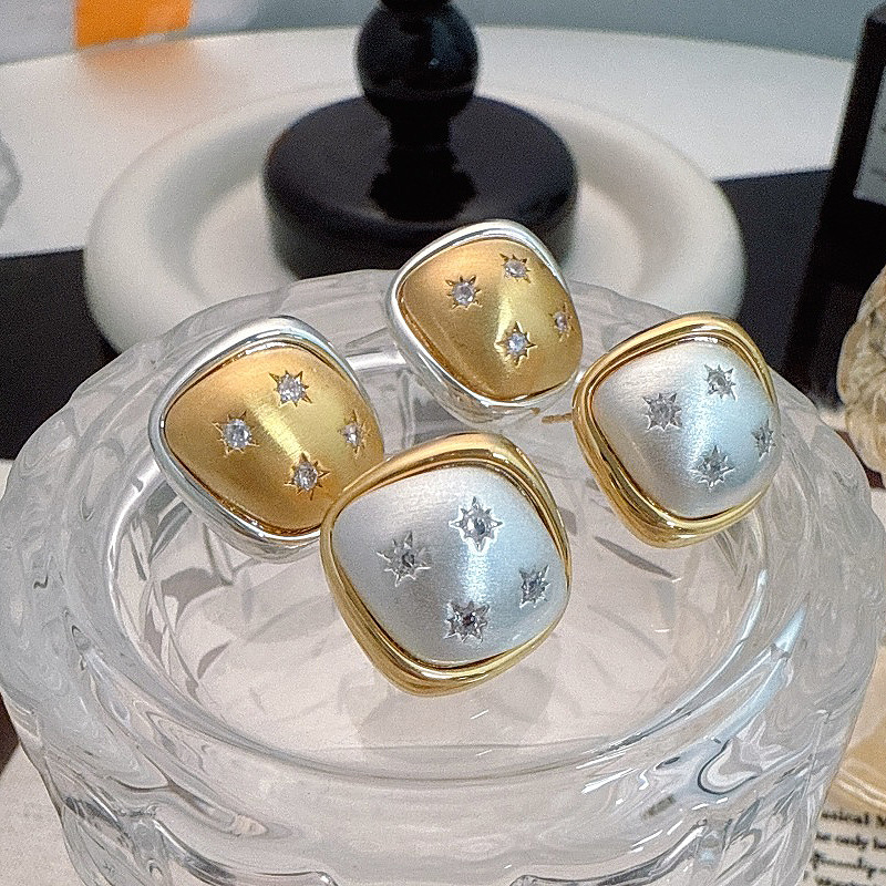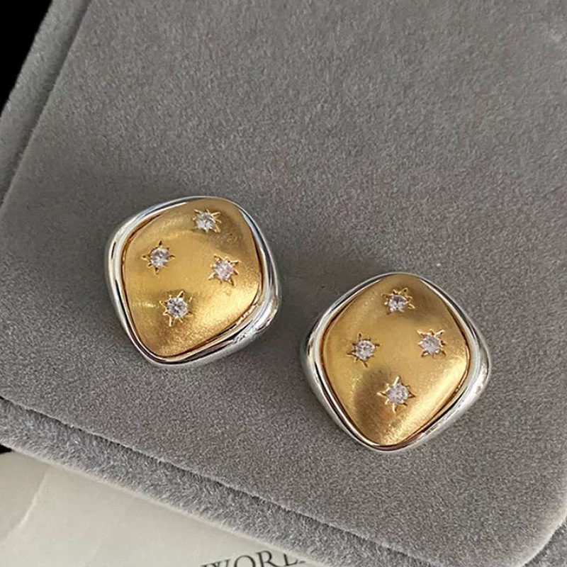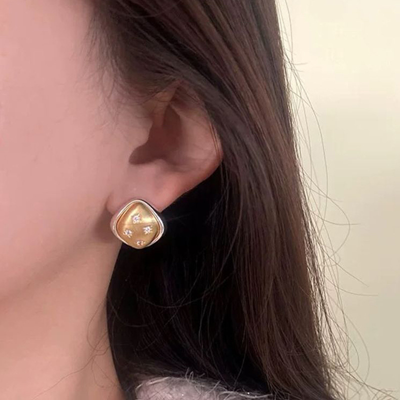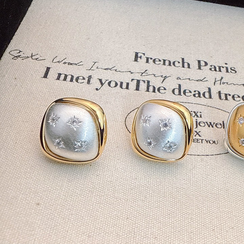小红书爆款时尚气质方形拉丝耳钉女微镶爆闪精致法式耳环一件代发