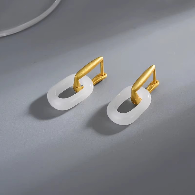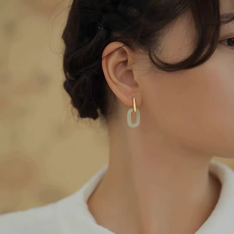 小红书同款和田玉女士款耳钉时尚韩版个性小香风气质耳坠简约耳饰