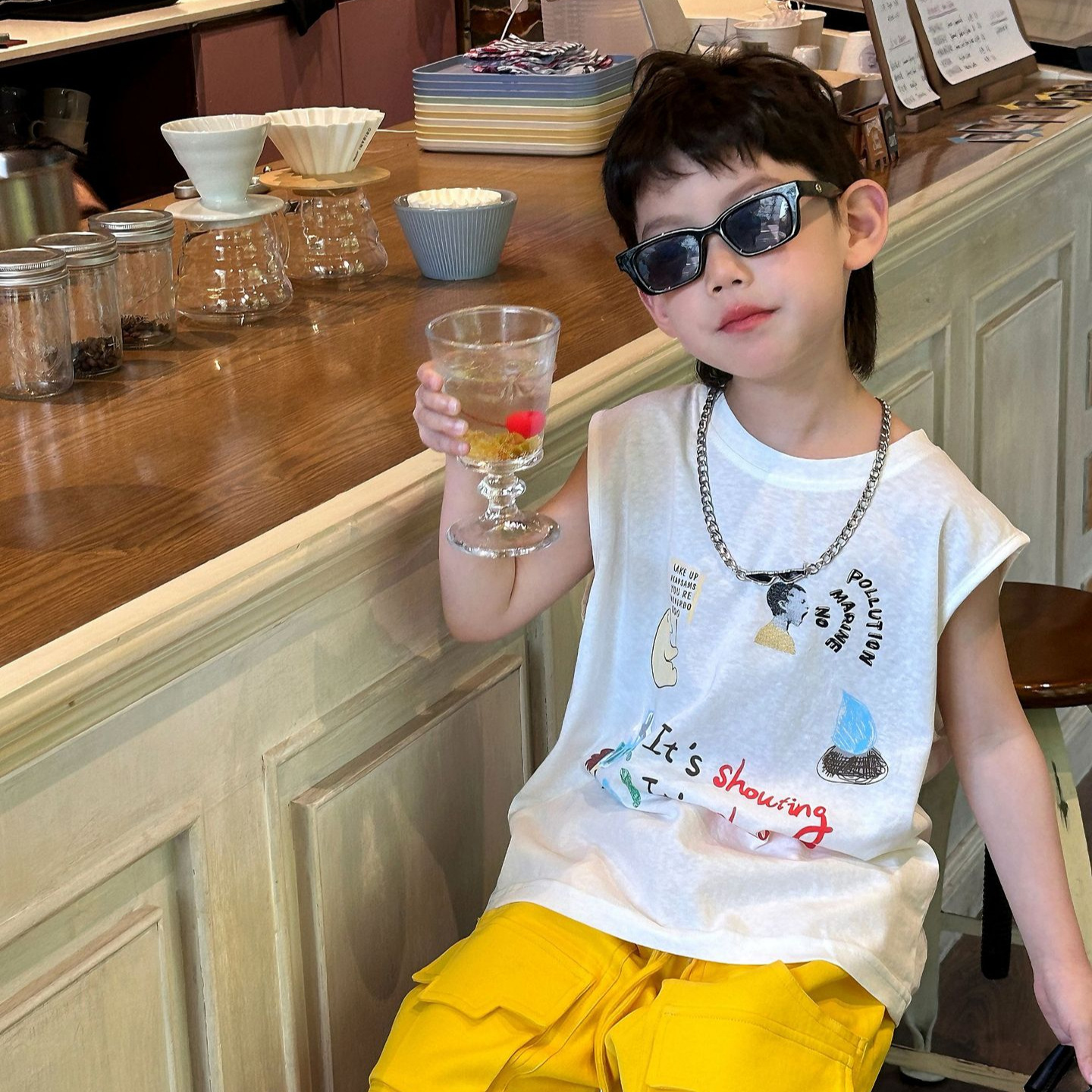 泰如夏季新款韩版男童时尚百搭卡通印花设计感背心儿童T恤潮