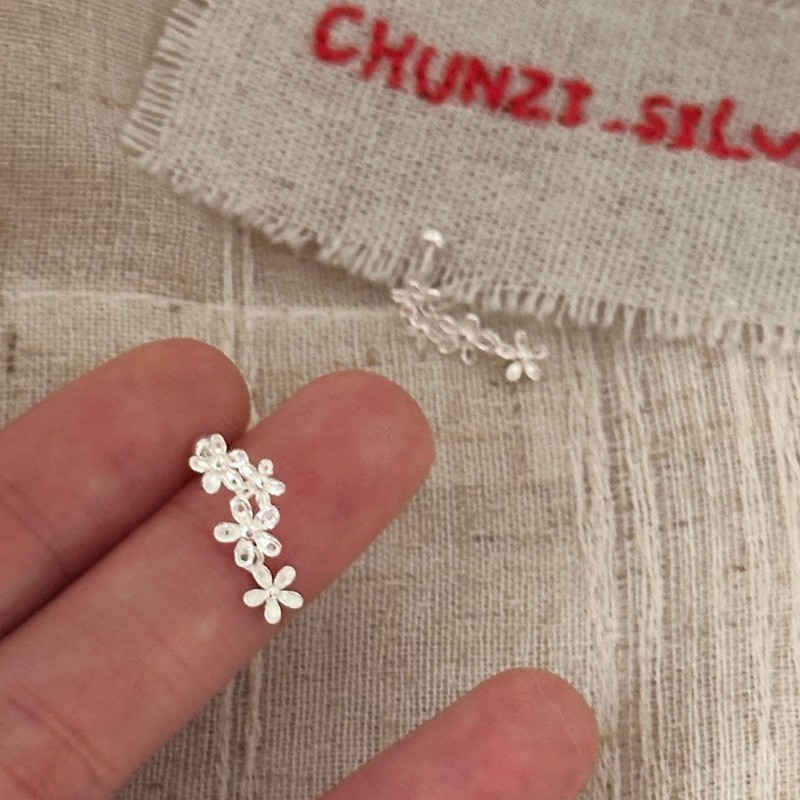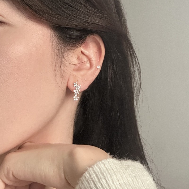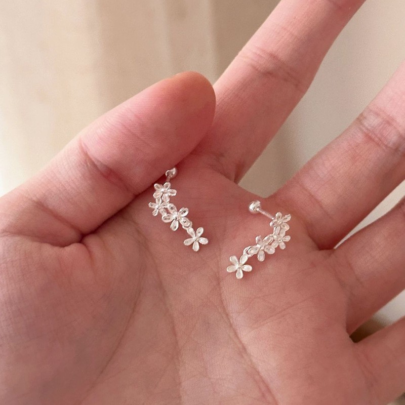 小红书爆款繁花似锦花朵耳钉女简约三朵精致小雪花耳饰品一件代发