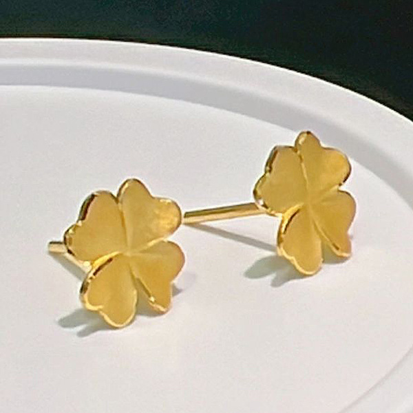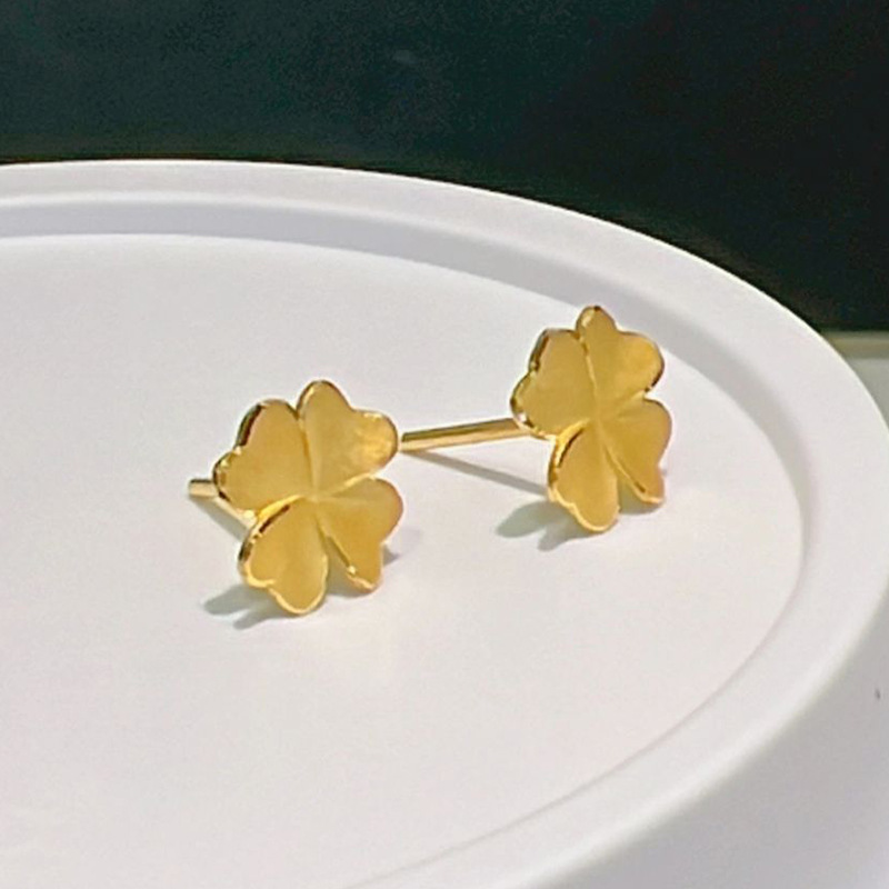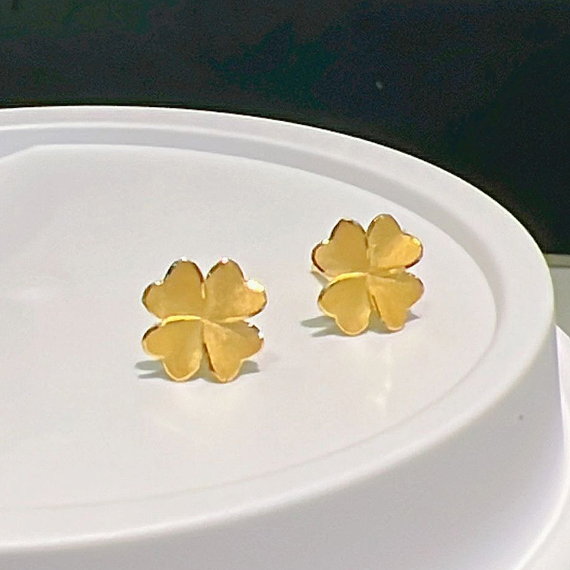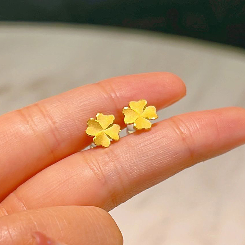 小红书爆款四叶草耳钉女爱心花瓣幸运草耳饰复古磨砂款高级感耳钉