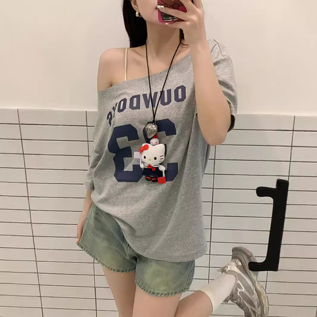 夏季新款正肩纯棉短袖T恤女休闲时尚减龄显瘦白色体恤上衣潮