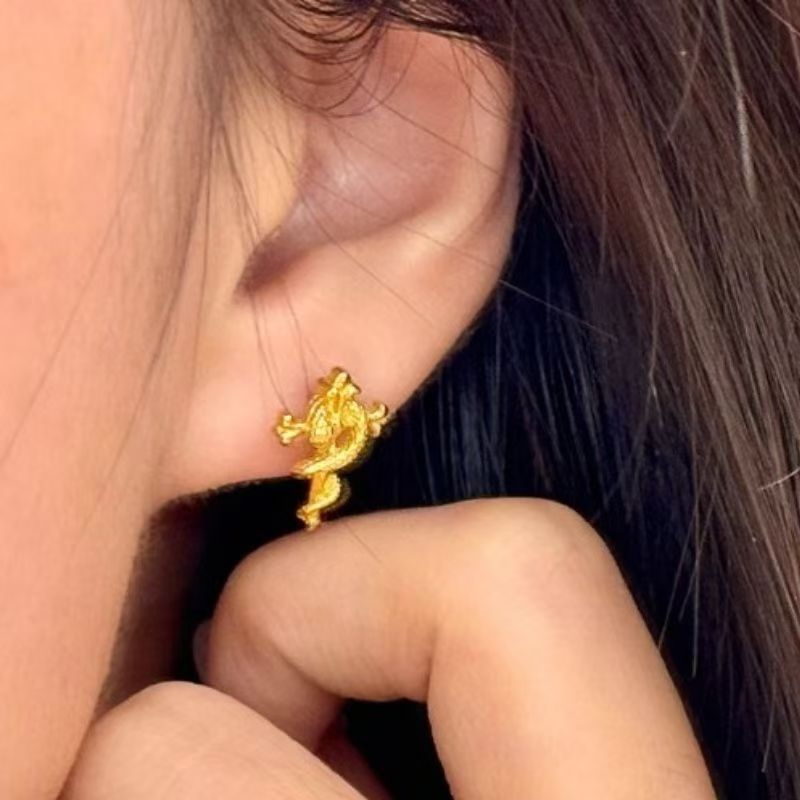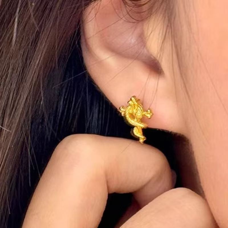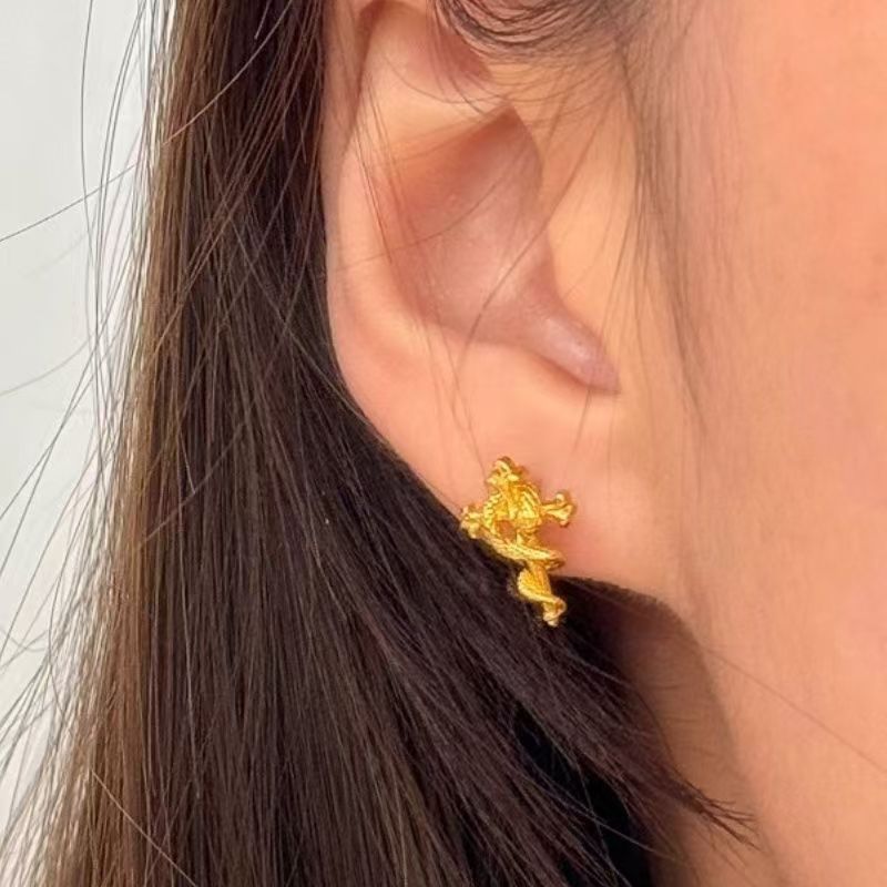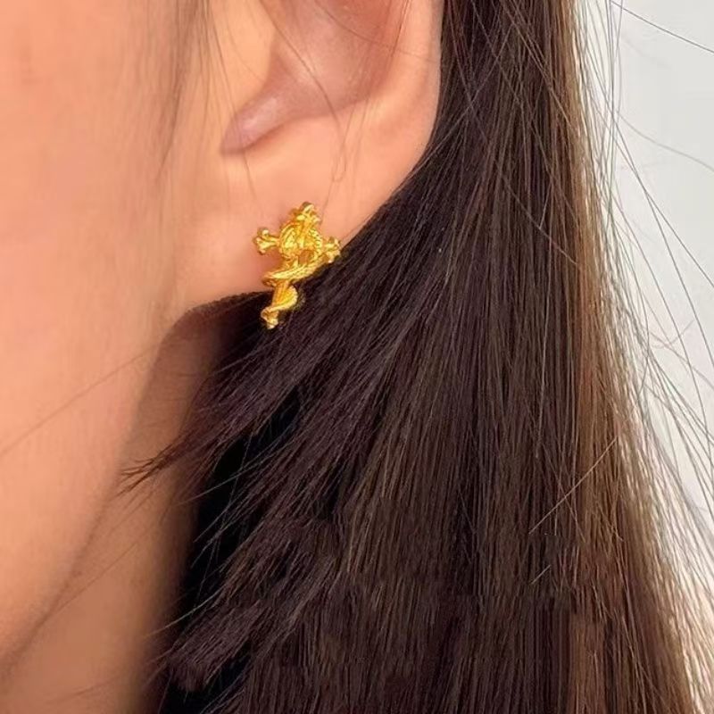 小红书爆款古法权杖小金蛇耳钉女vintage本命年生肖蛇配饰耳环女