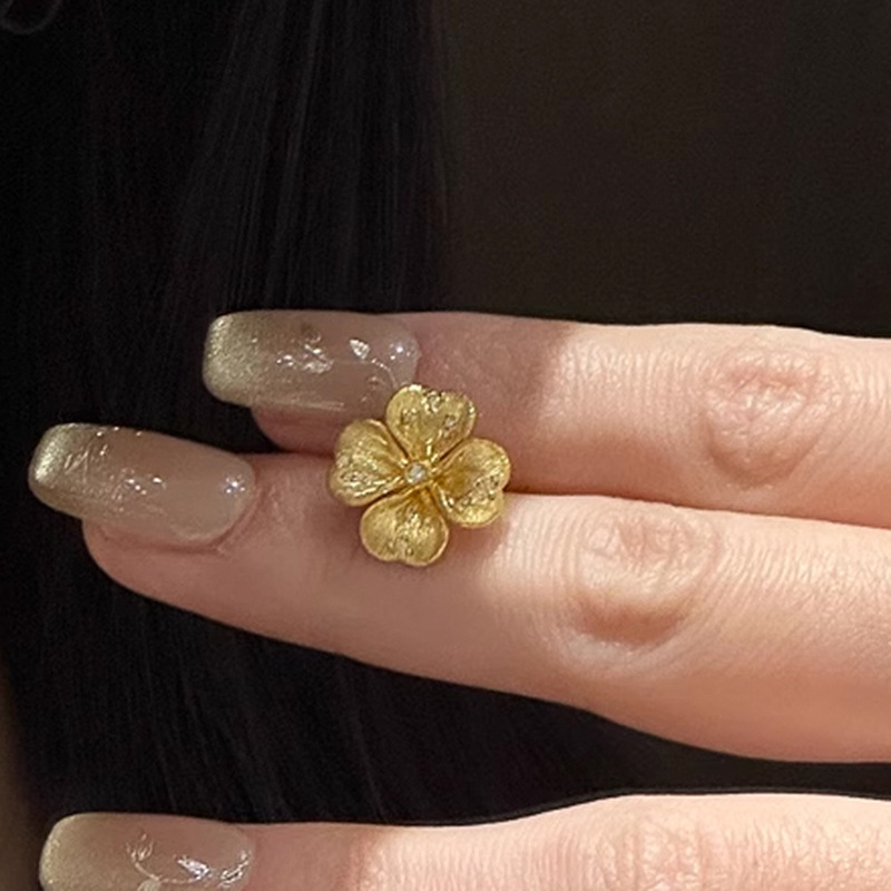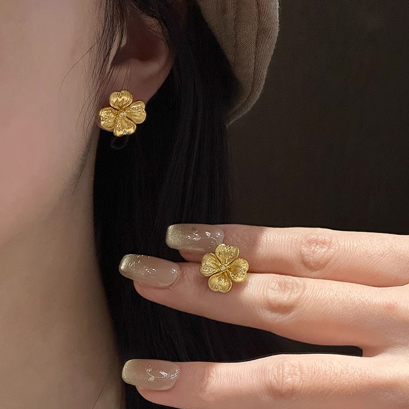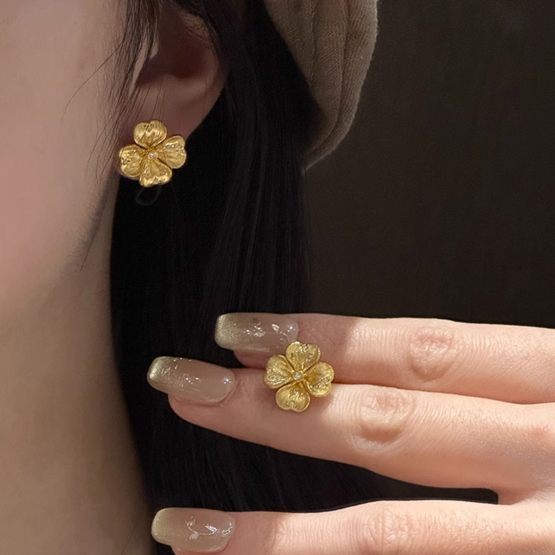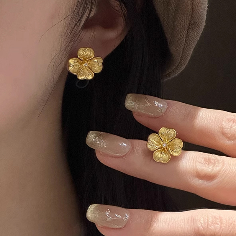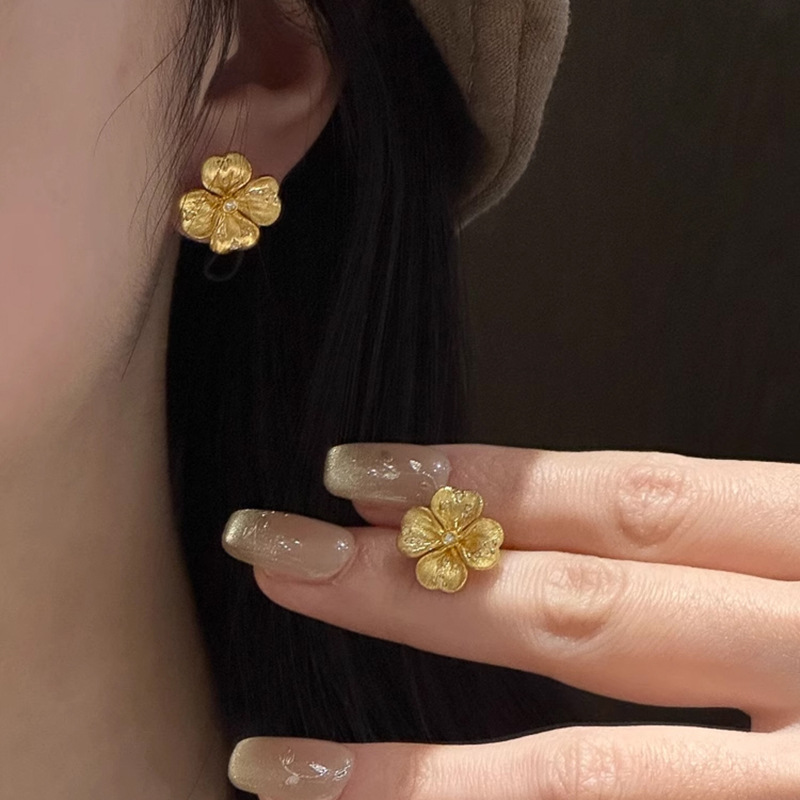 小红书爆款拉丝四叶草耳钉2025新款古法重工小金花耳饰一件代发