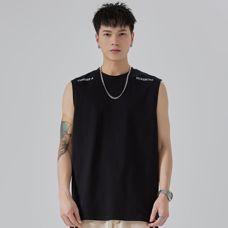 T9957#夏季新品美式重磅260G透气背心男宽松潮牌坎肩无袖印花上衣