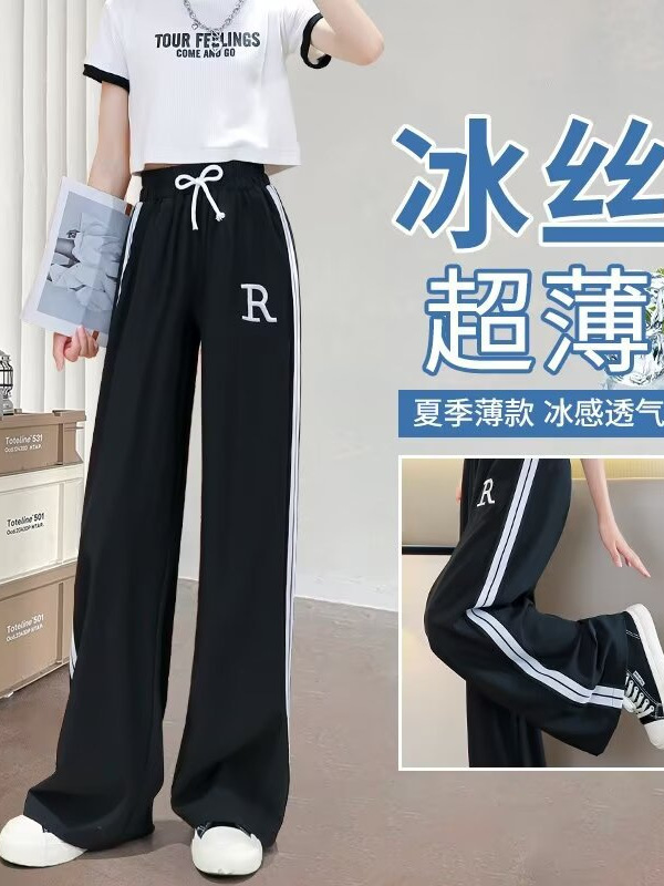 女童阔腿裤夏季新款洋气大童直筒裤子个性拉杆儿童冰丝防蚊裤