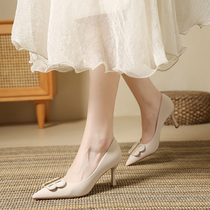 850-88【羊皮】欧洲站新款时尚性感女细跟法式尖头金属扣高跟女鞋
