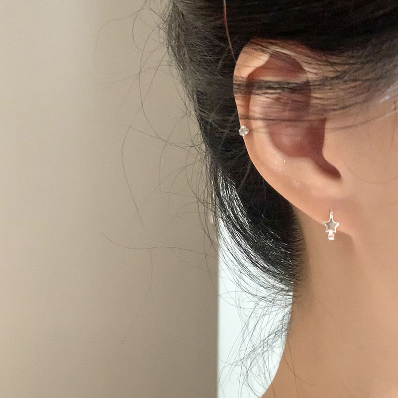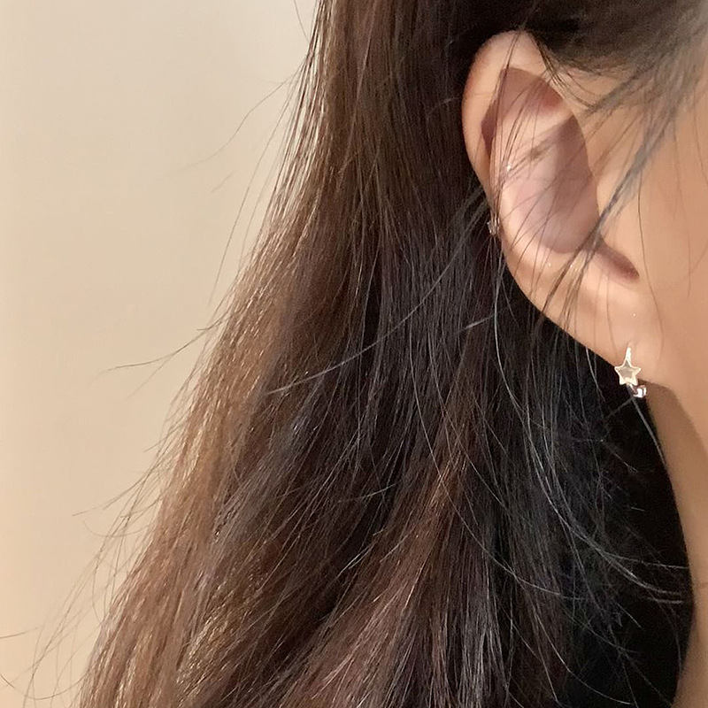 小红书爆款星星耳扣女新款清冷感素银色耳钉精致小巧养耳耳饰