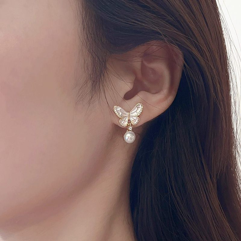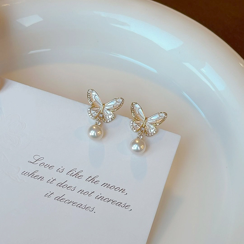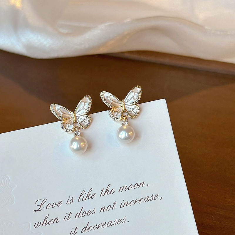 小红书同款蝴蝶珍珠耳钉女时尚高级感轻奢珐琅工艺设计显白耳坠