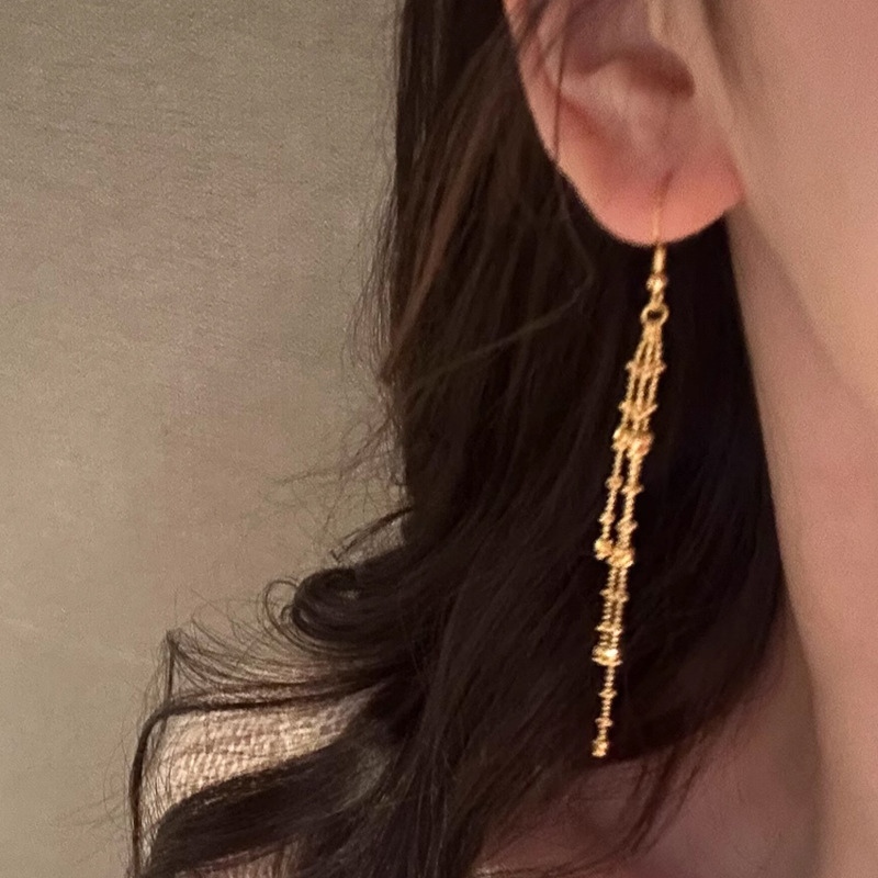 小红书爆款流苏长款链条耳钩2025新款韩式高级感显脸小精致耳钉