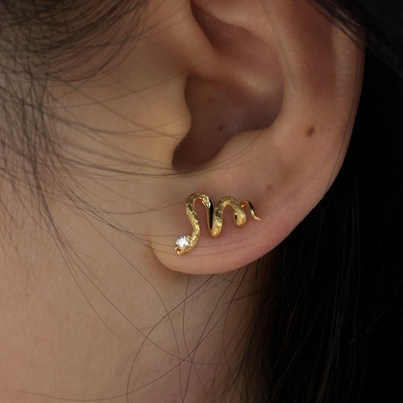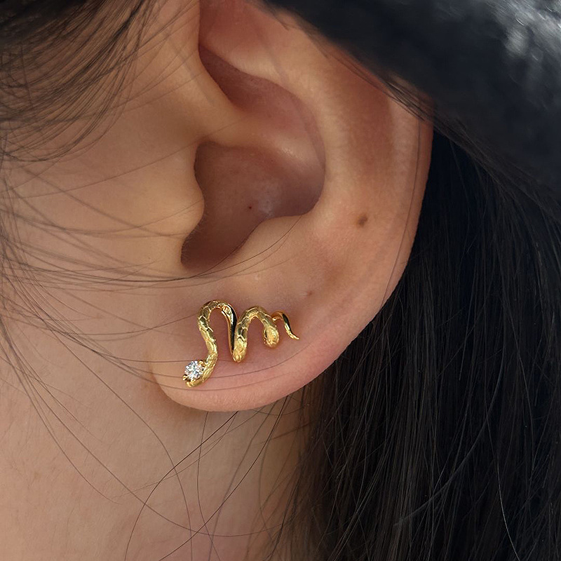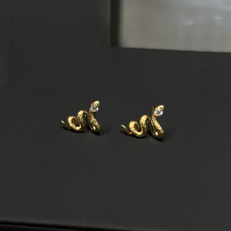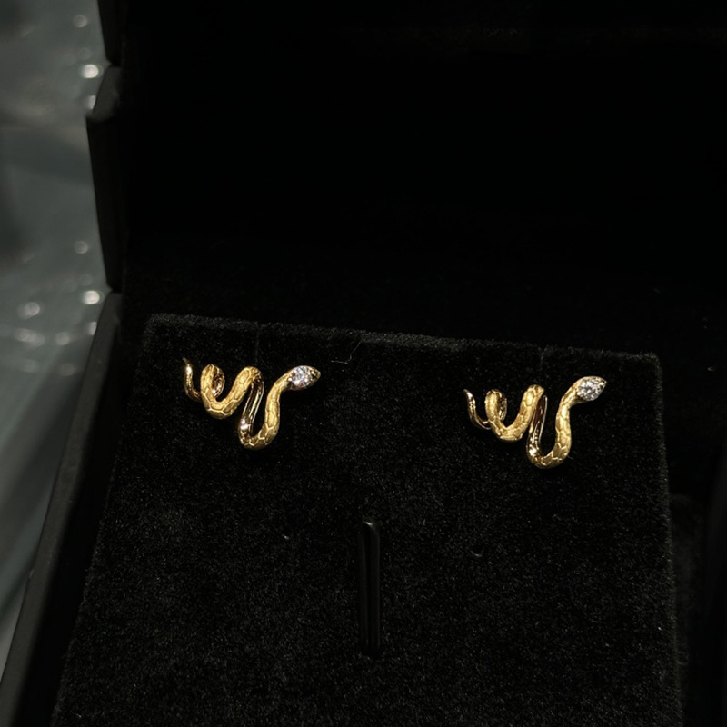小红书爆款复古灵蛇耳钉2025本命年古法金色蛇形小金蛇闪钻耳饰品