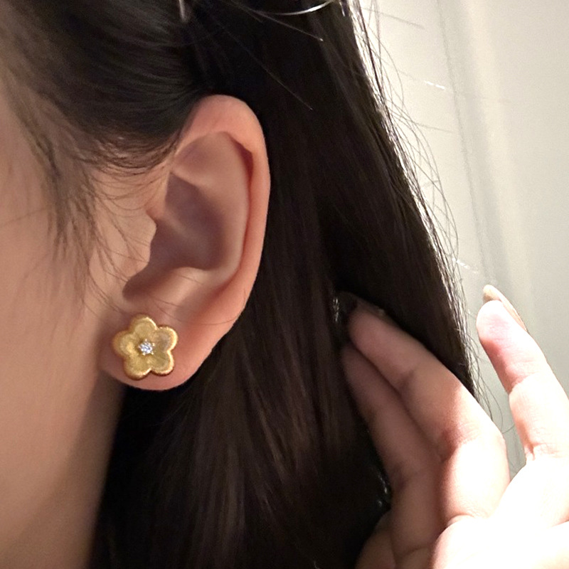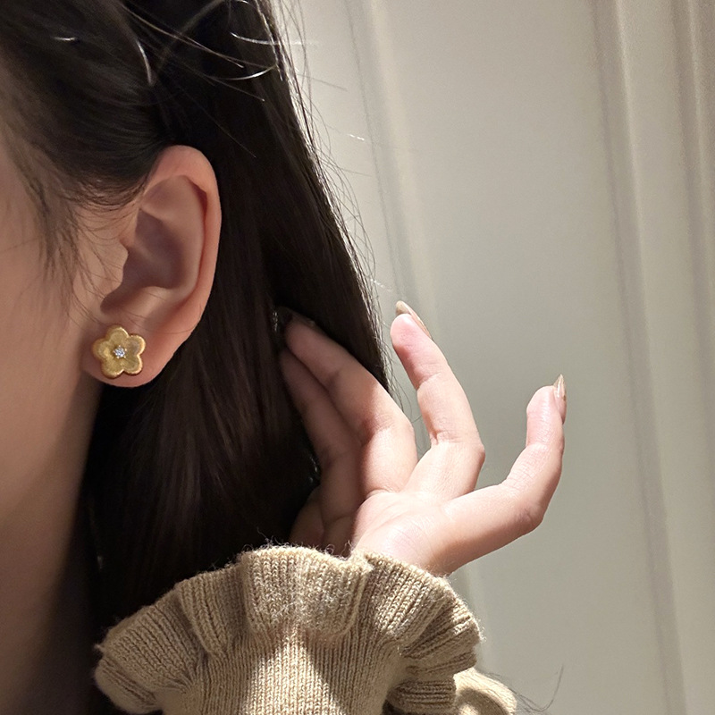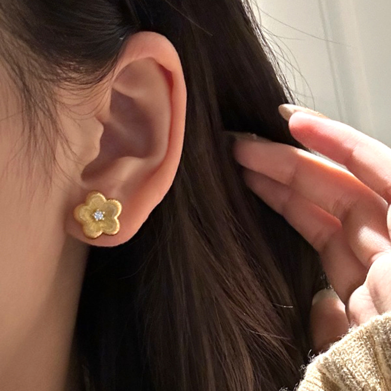 小红书爆款拉丝花花耳钉年新款小众简约百搭款耳饰一件代发