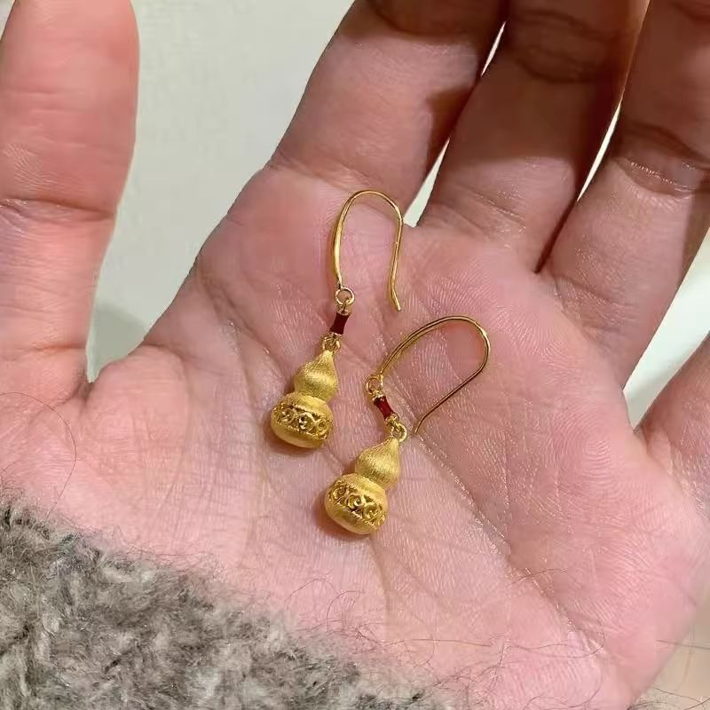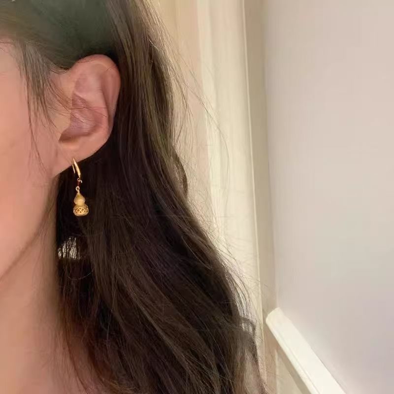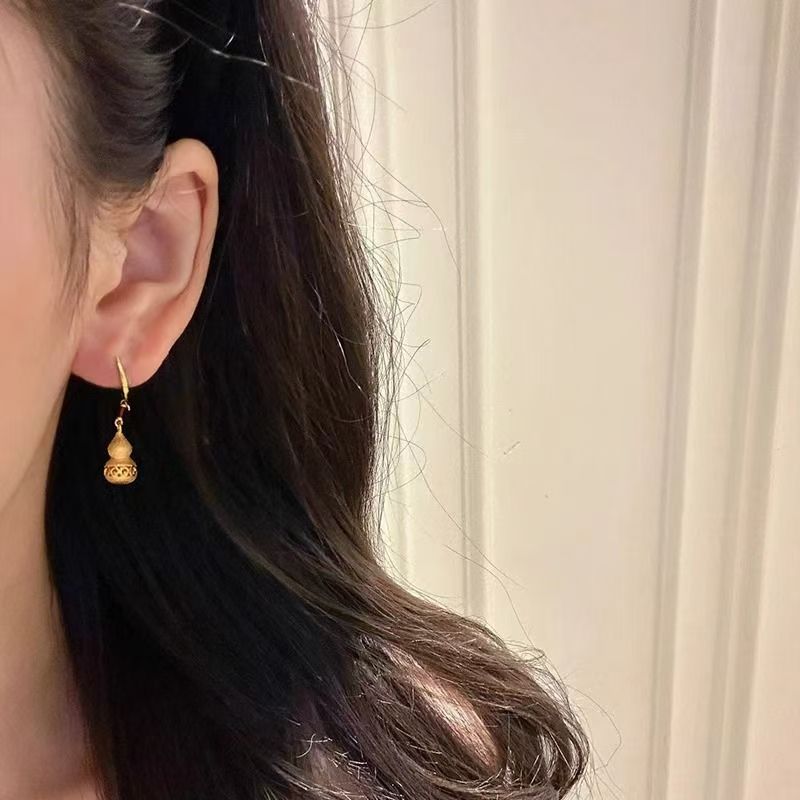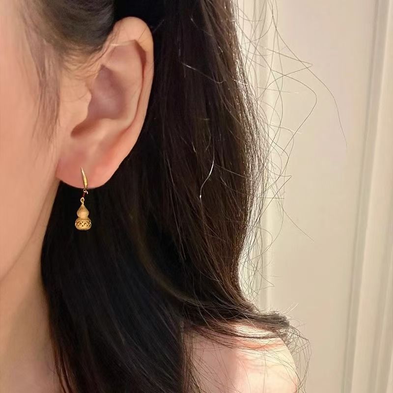 小红书爆款镂空拉丝葫芦耳钉2025新款复古新中式福禄小金葫芦耳钩