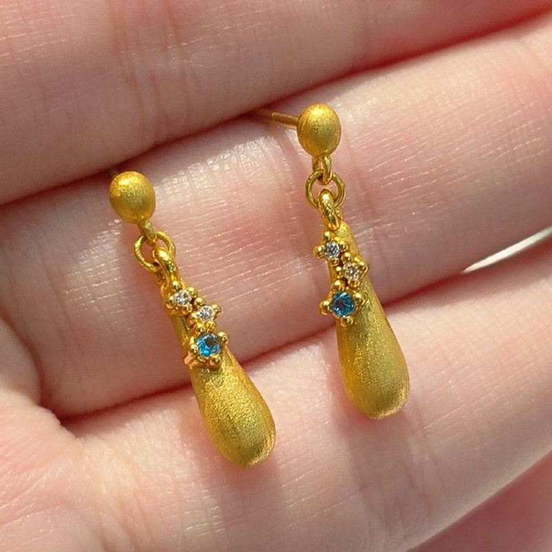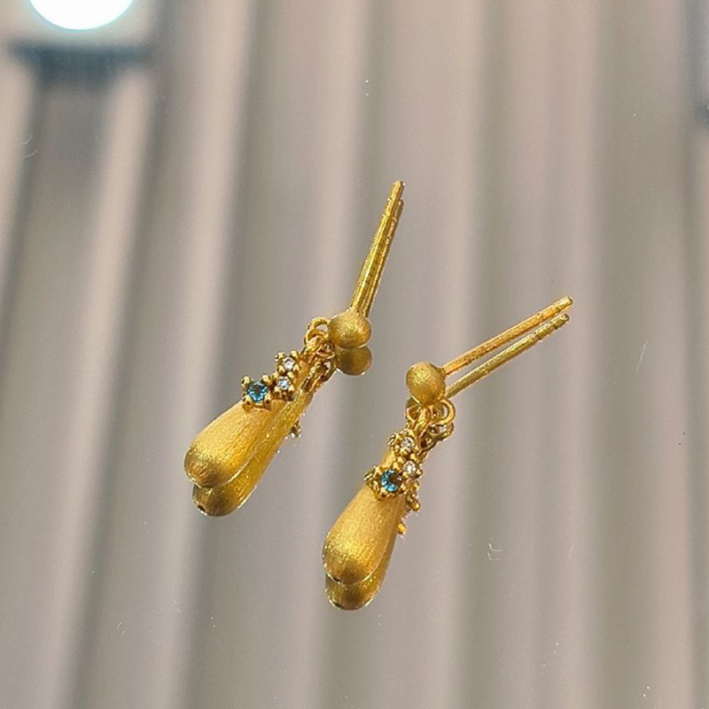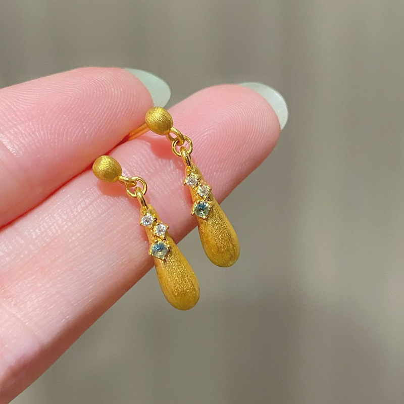 小红书爆款布拉风格拉丝耳钉2025法式古法金工艺微镶水滴耳饰品