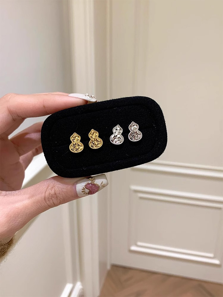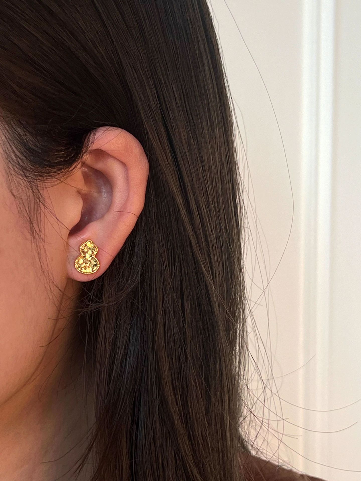 小红书爆款碎冰冰葫芦耳钉国风新中式福禄源源金葫芦耳饰一件代发