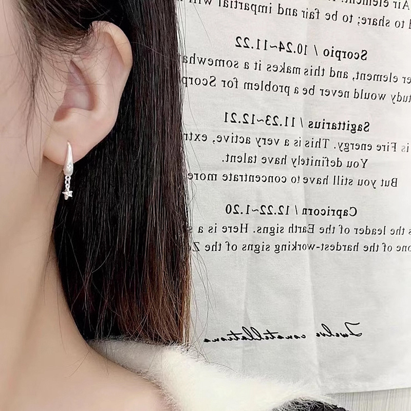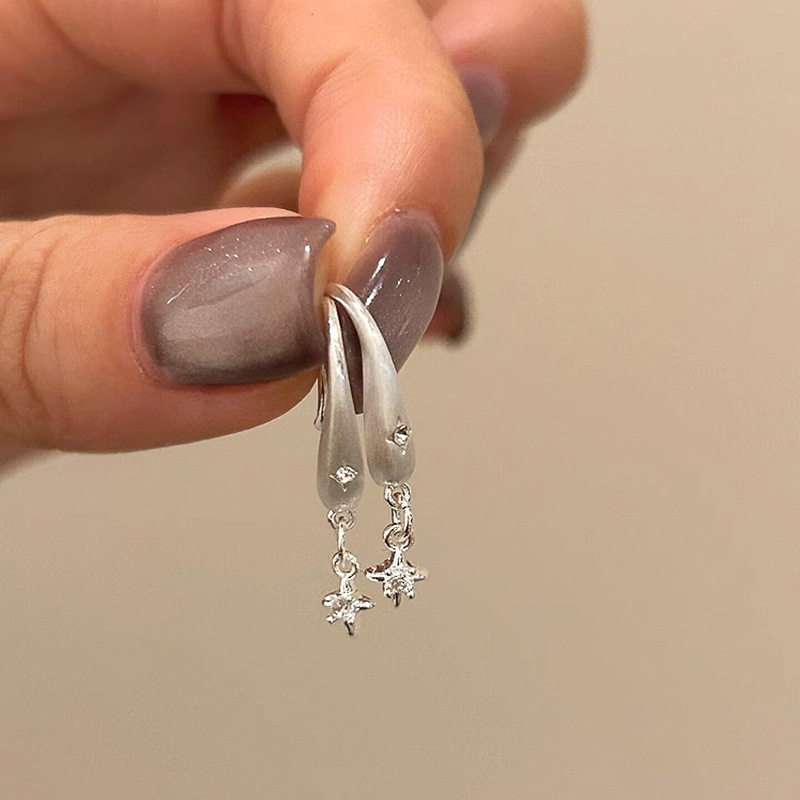 小红书爆款拉丝星芒耳钩2025新款复古重工点钻六芒星流苏精致耳钉