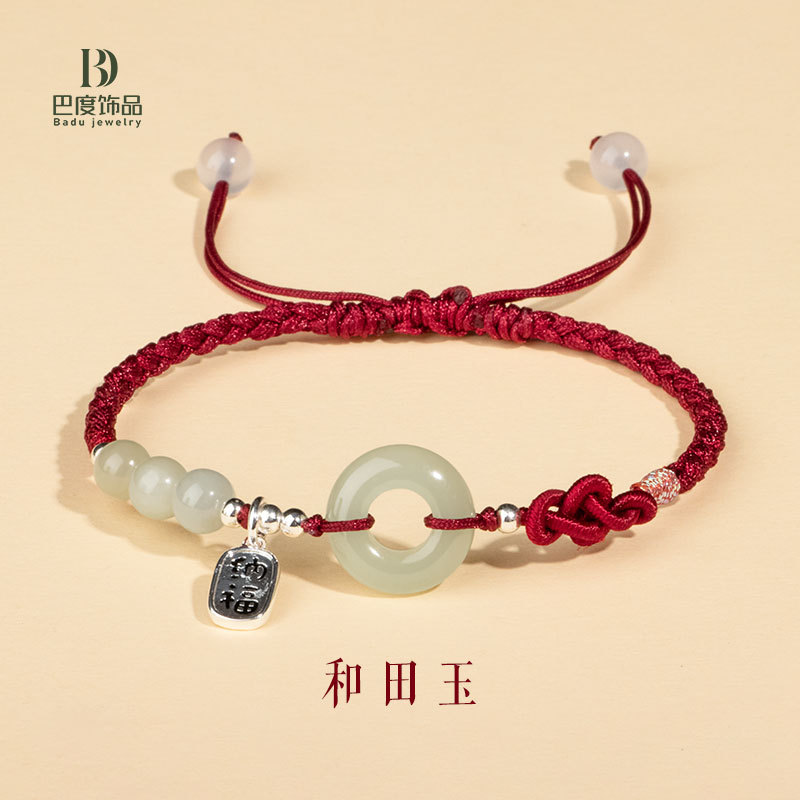 新款天然和田玉平安扣纯手工编织红绳手链情侣款手饰生日礼