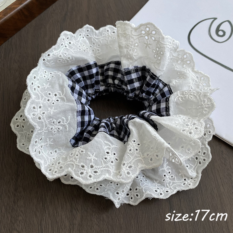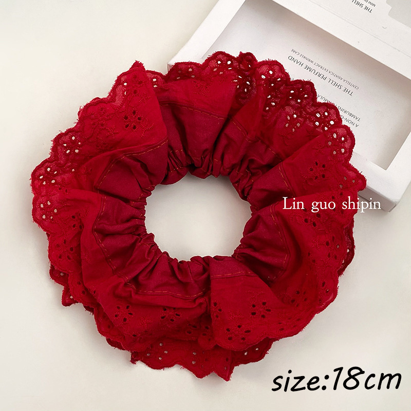 法式复古双层荷叶边大肠发圈秋季丝绒高级感发绳扎头发毛绒头绳女