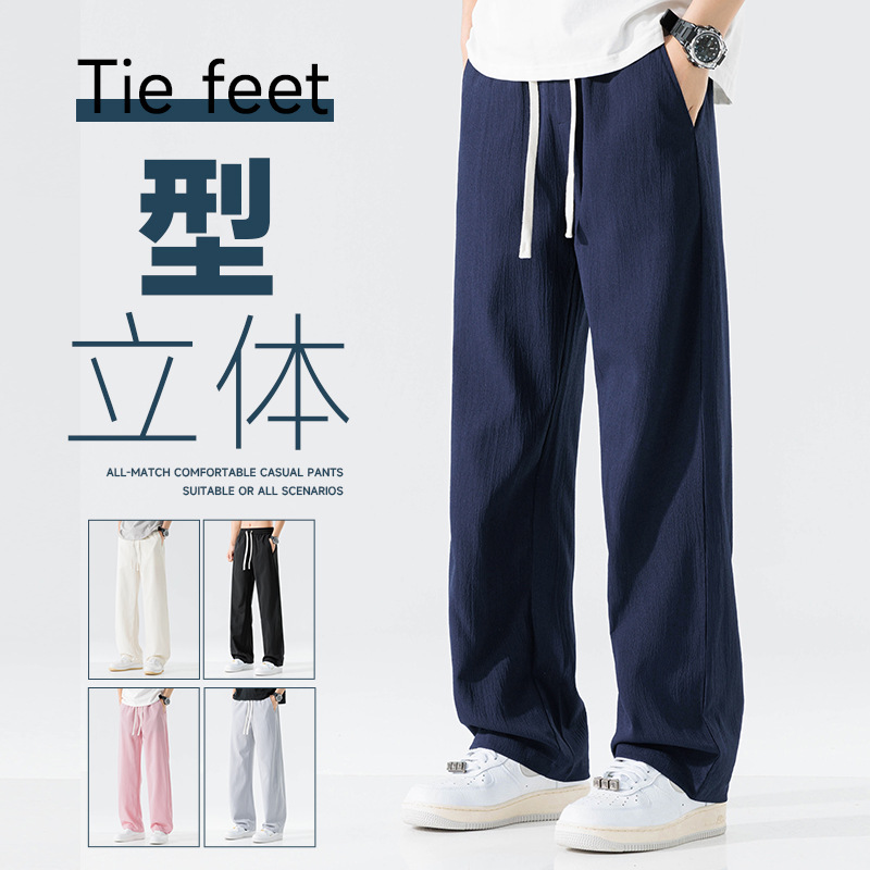卡其色棉麻裤子男夏季薄款男裤休闲裤纯棉卫裤男士长裤垂感直筒裤