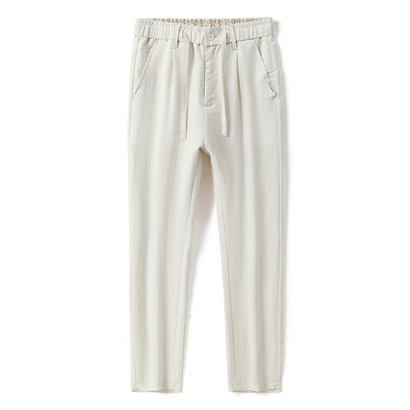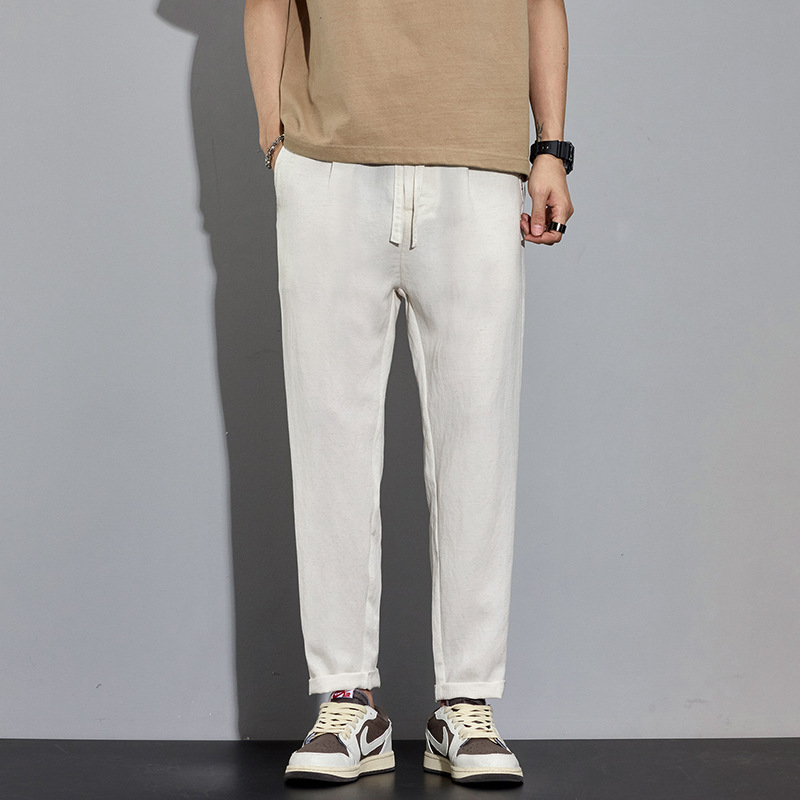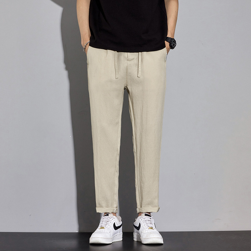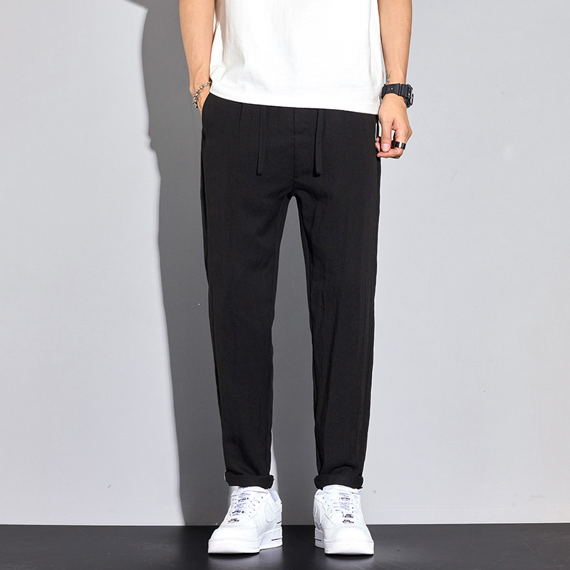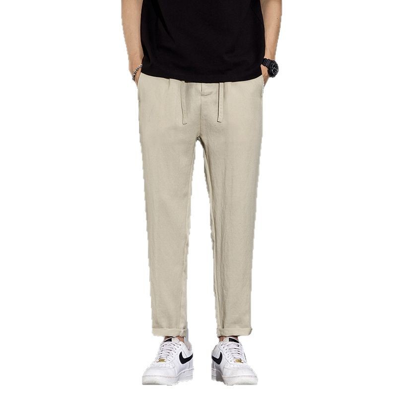 休闲裤子男款夏季薄款潮流百搭帅气运动宽松亚麻直筒九分裤男