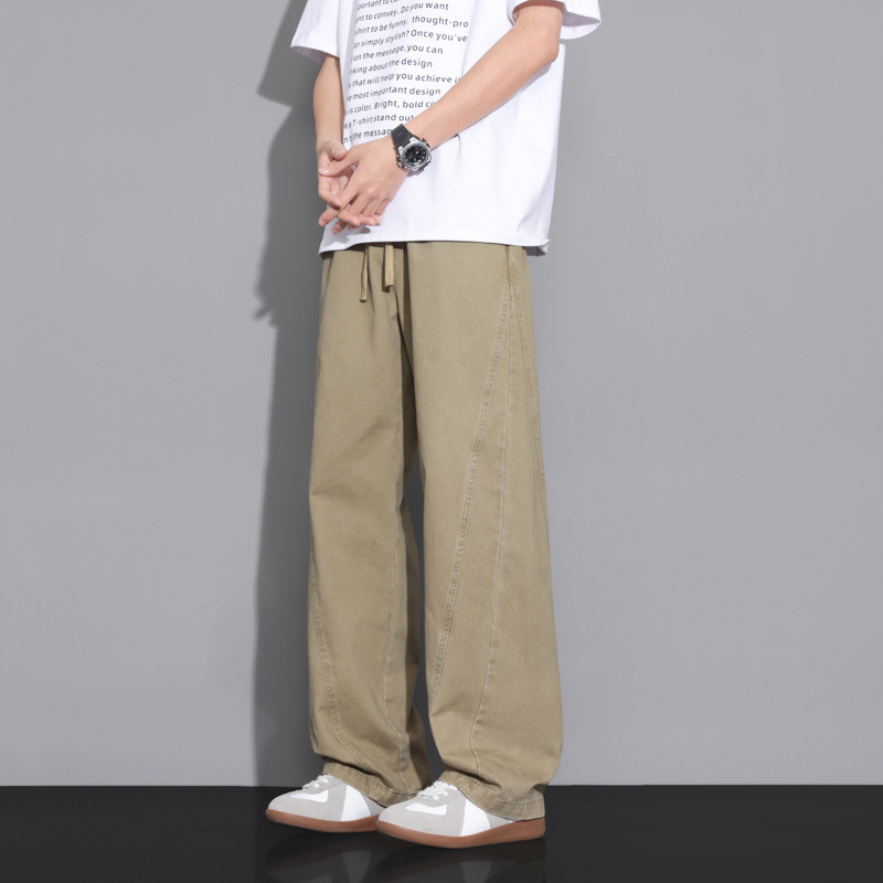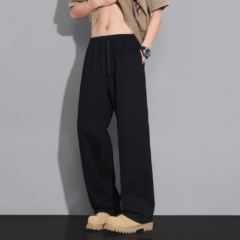 冰丝裤子男夏季薄款宽松潮牌运动阔腿卫裤垂感直筒裤黑色休闲长裤