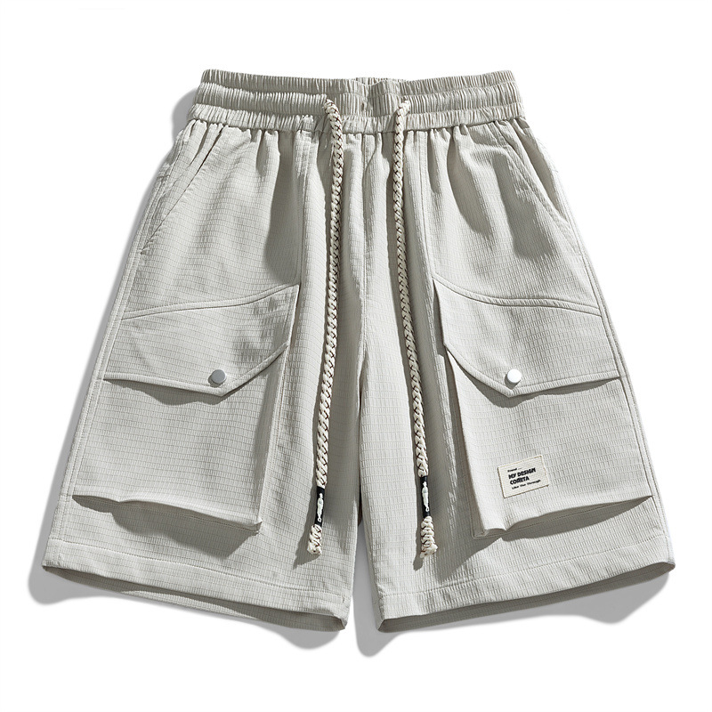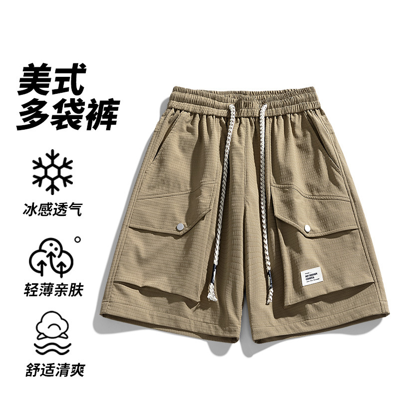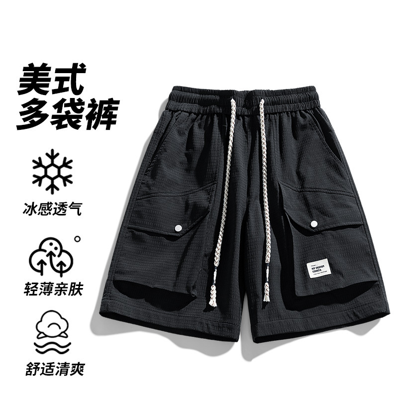 潮牌工装短裤男夏季薄款帅气直筒运动裤弹力松紧腰百搭大裤衩子