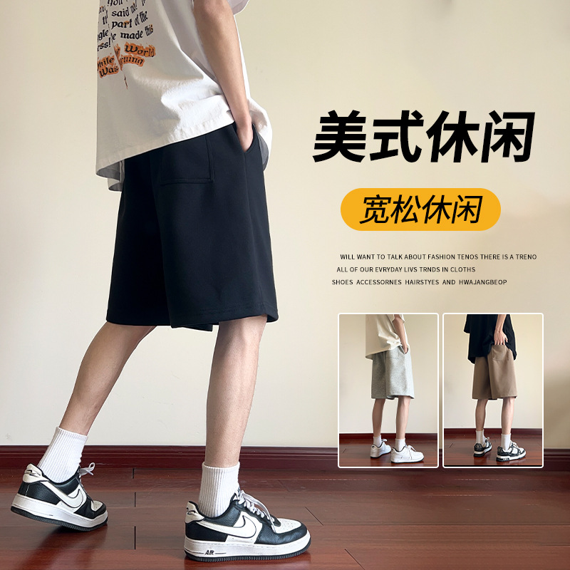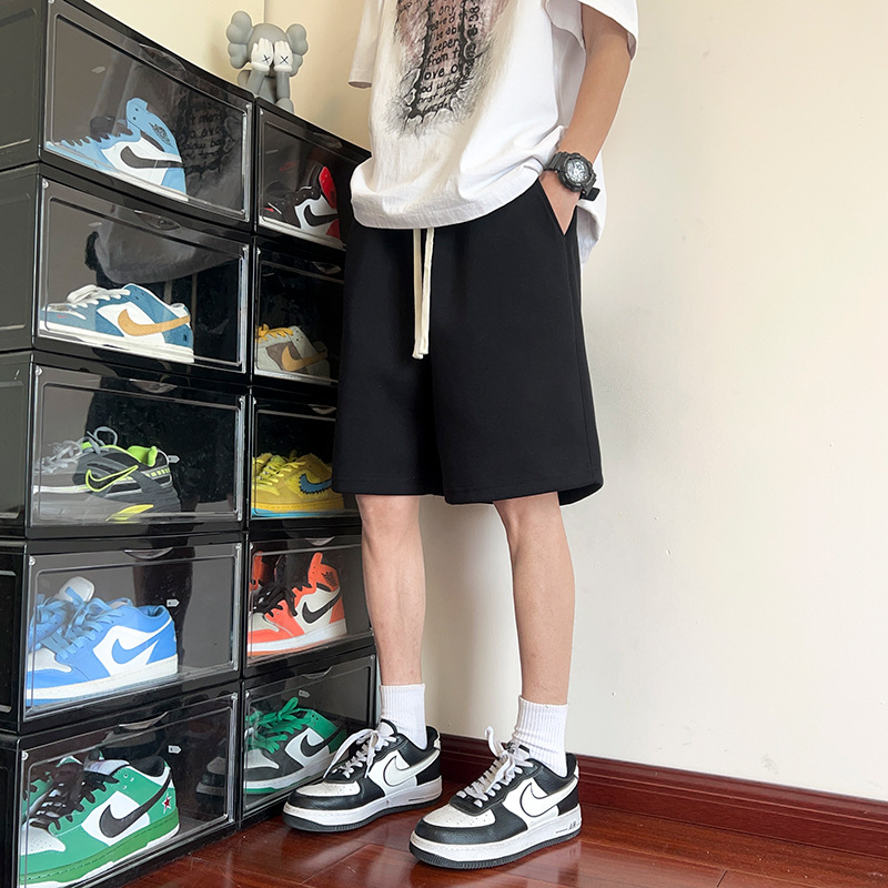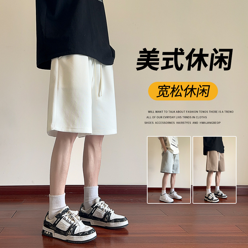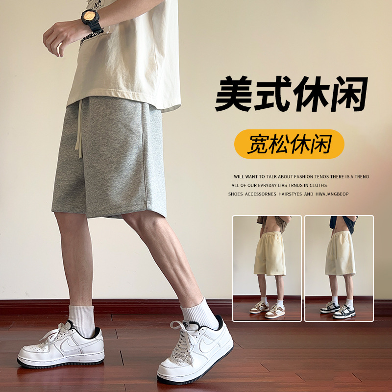 毛边休闲运动高腰抽绳短裤女中裤夏季新款阔腿bf风宽松五分裤