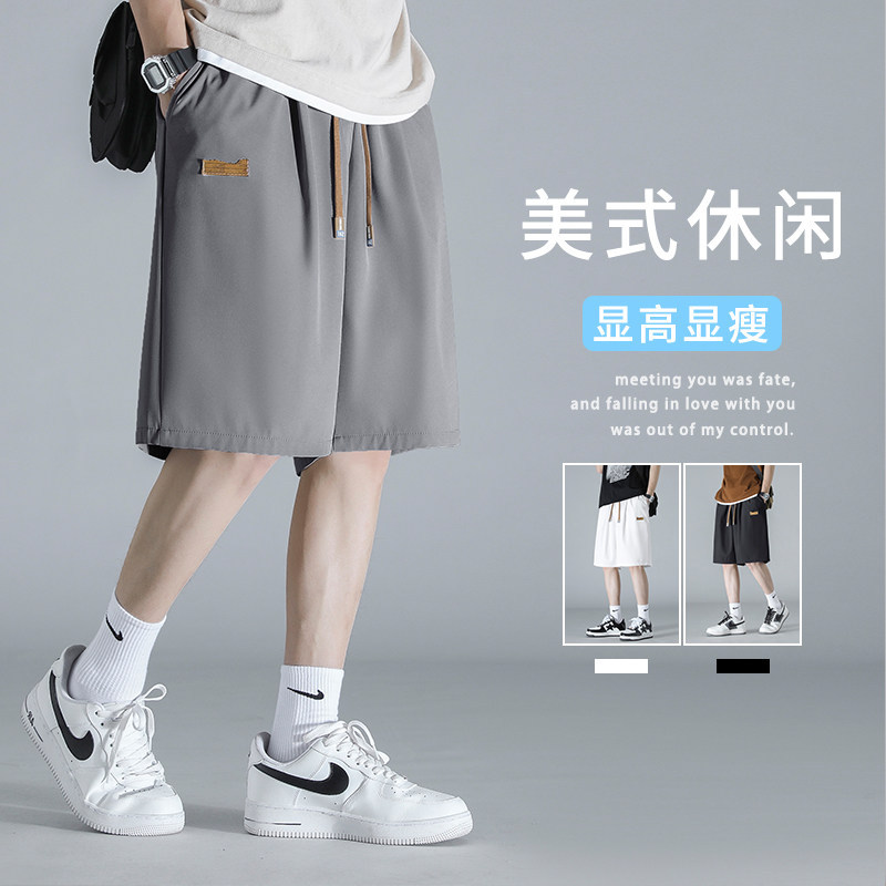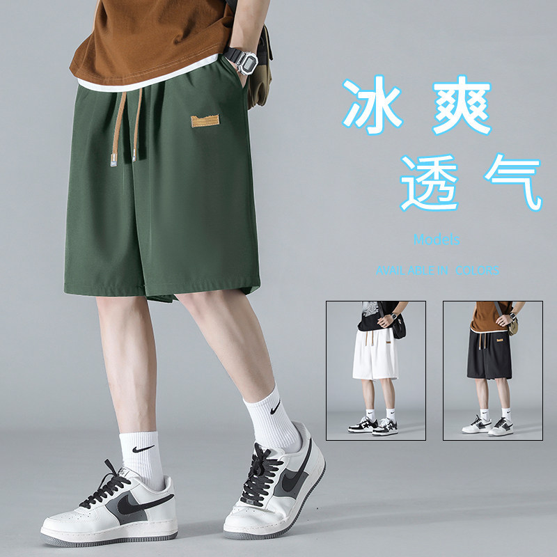 冰丝短裤男士夏季薄款运动裤垂感宽松直筒裤休闲五分裤速干空调裤