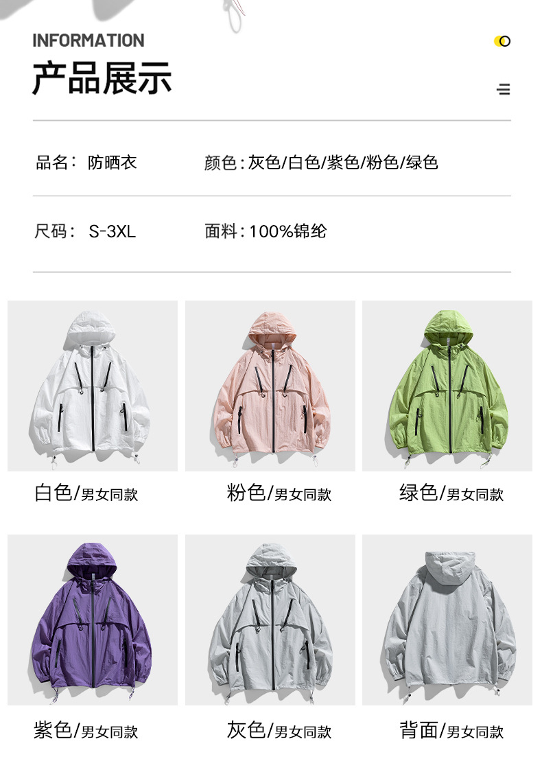 锦纶山系户外男骑行轻薄凉感UPF50+情侣防晒服皮肤衣套
