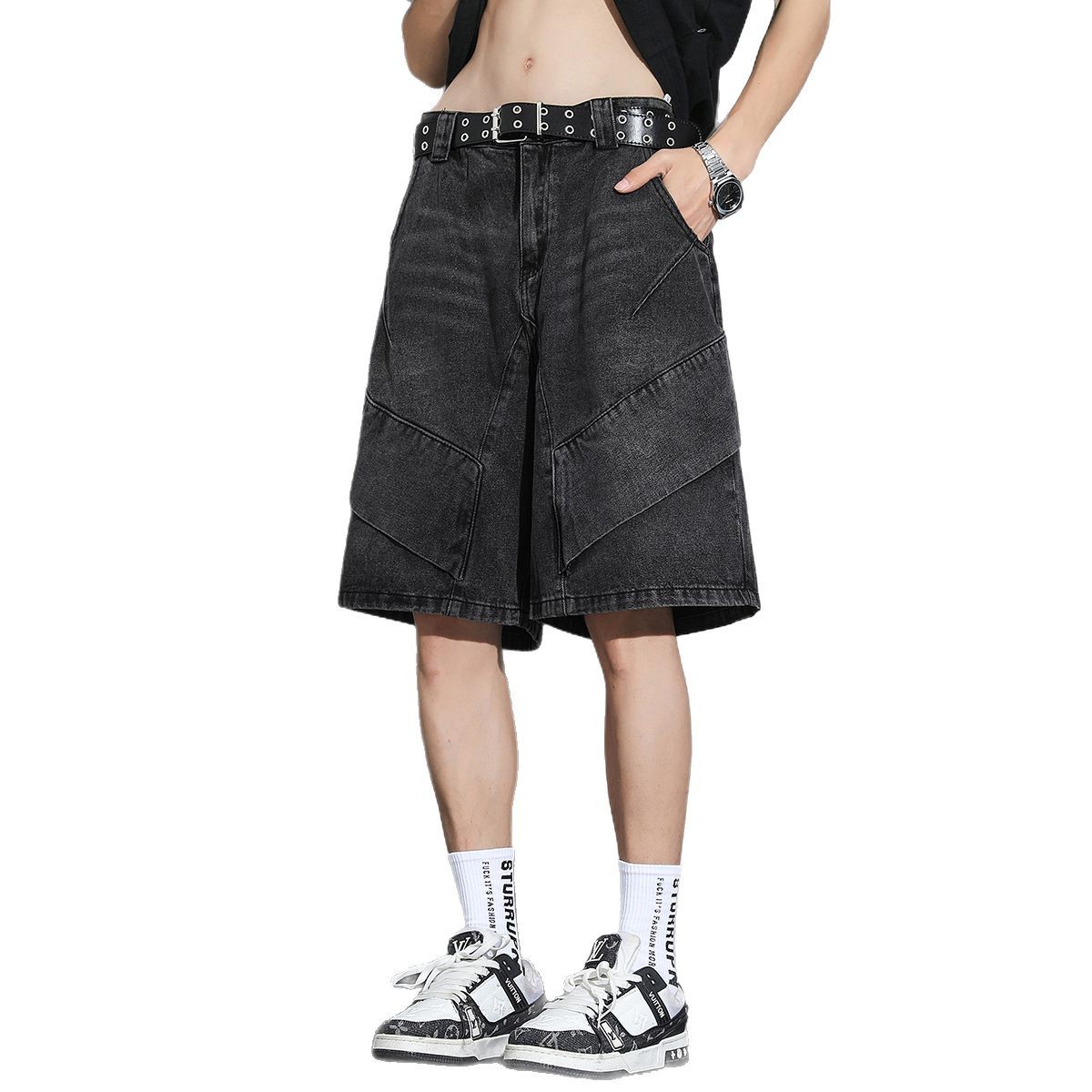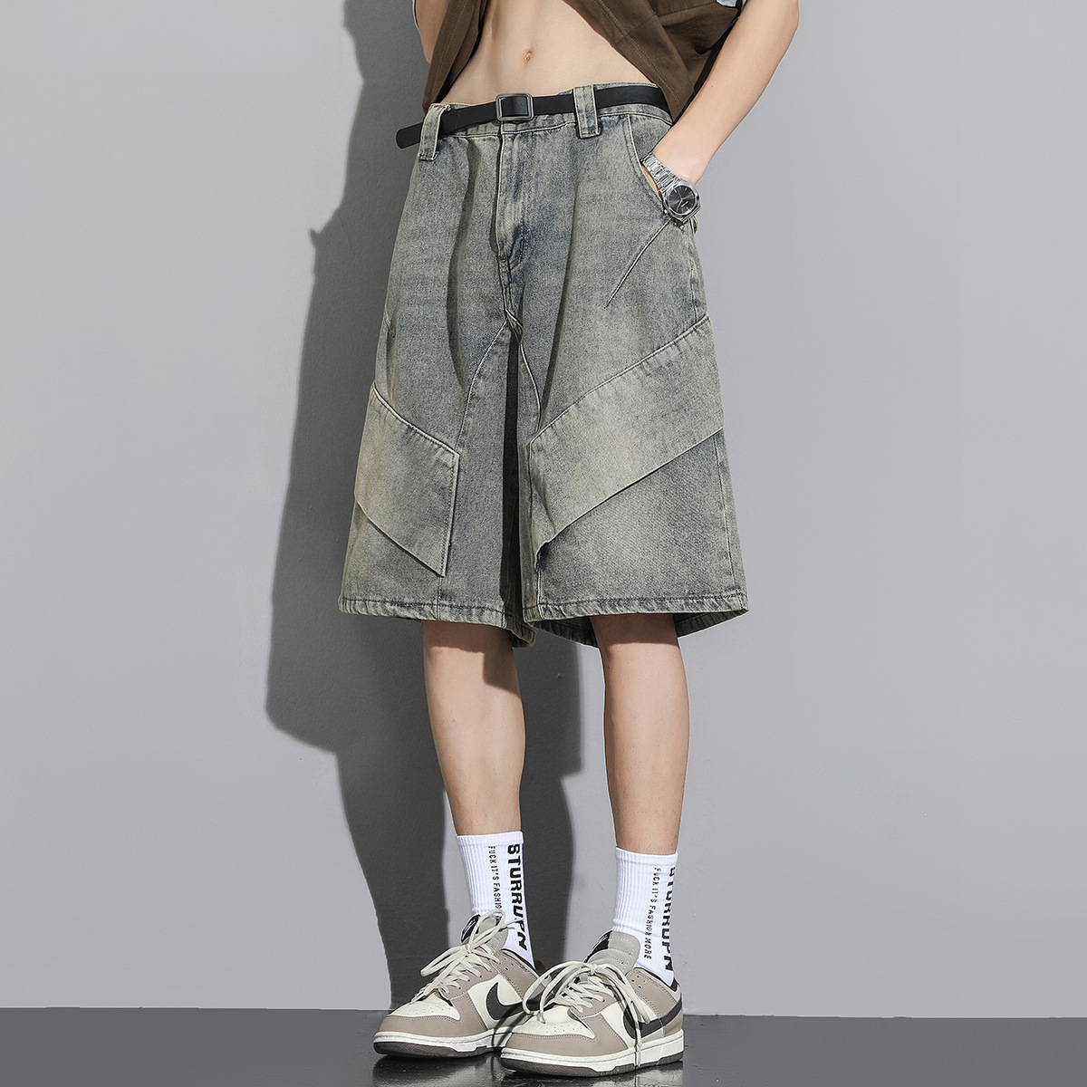 小众港风复古水洗牛仔短裤夏季新款宽松潮牌设计感休闲五分短裤潮