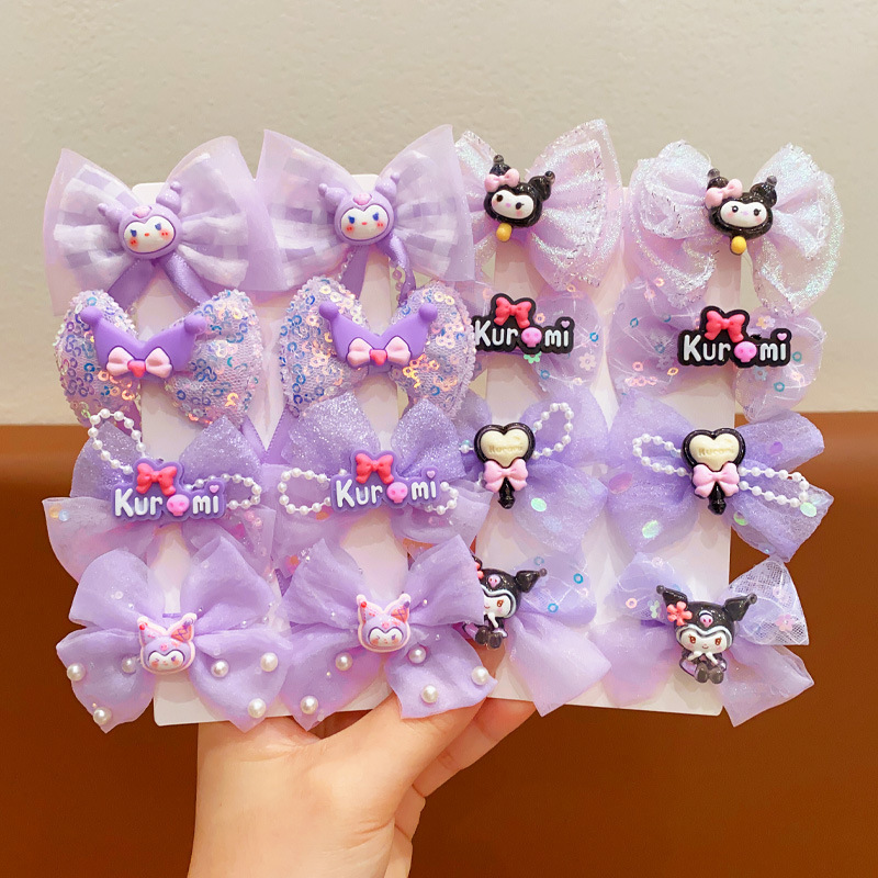 库洛米卡通发夹女童蝴蝶结头饰小女孩刘海夹不伤发超仙带珍珠发夹