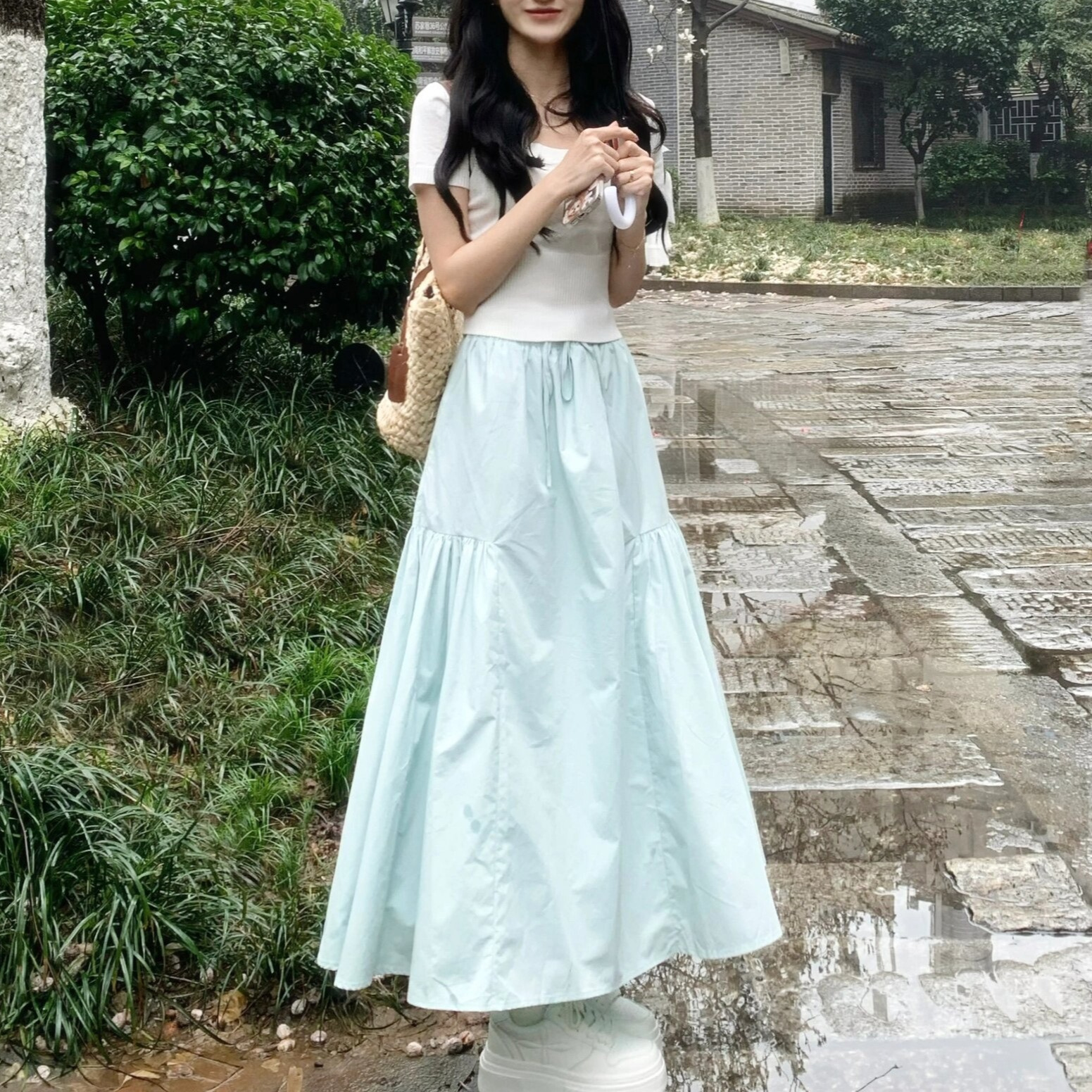 高腰松紧半身裙女夏季新款小个子设计感A字裙子修身T恤针织衫