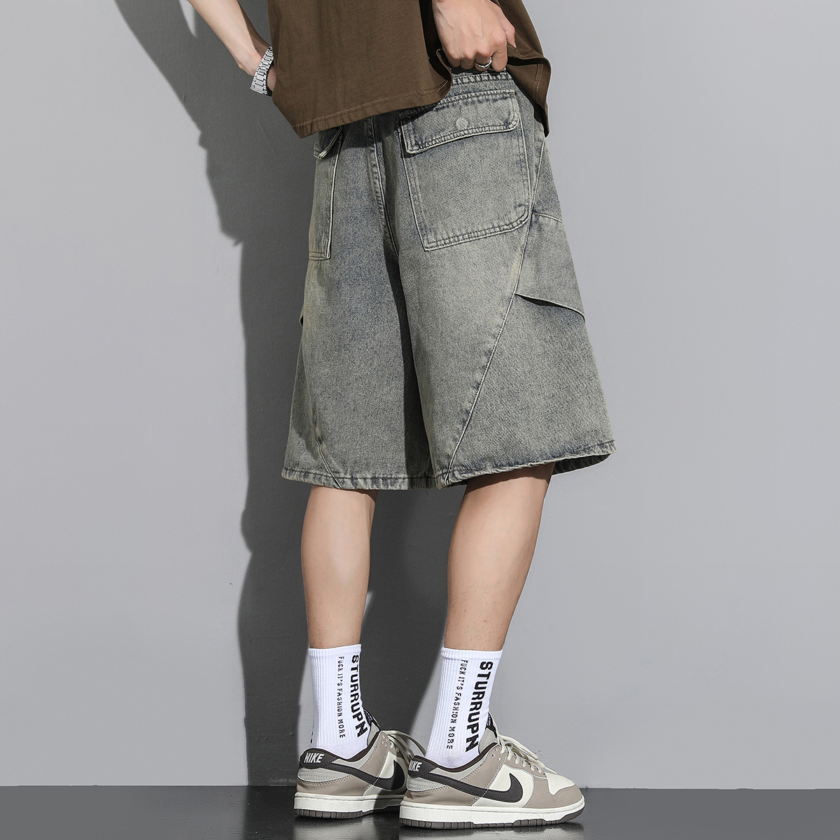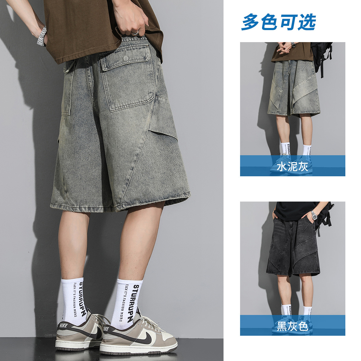 美式复古牛仔短裤男士外穿夏季薄款宽松男款休闲五分中裤子男