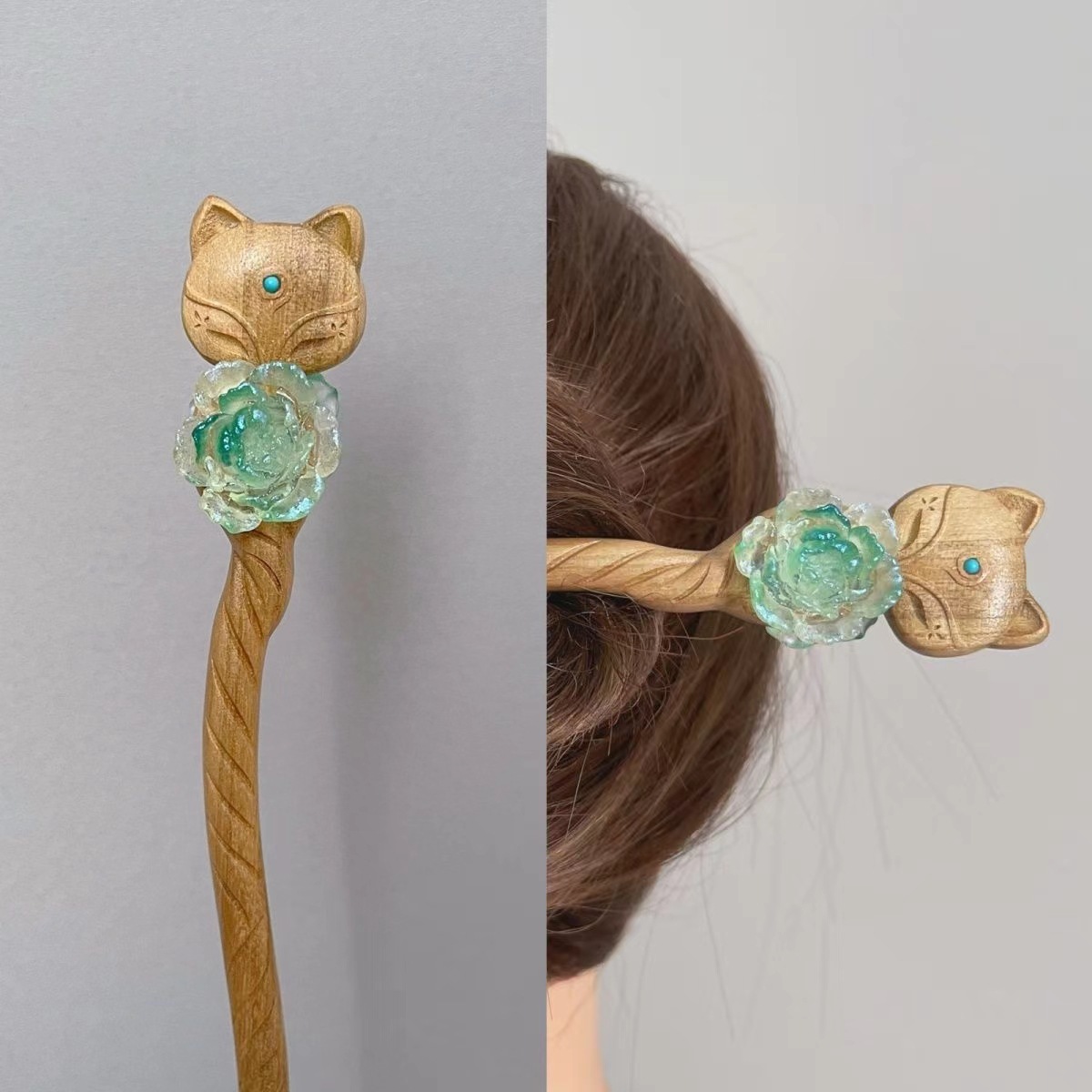 原创红狐狸九尾玫瑰狐狸青丘白浅妖娆仙气十足双面簪子新中式国风